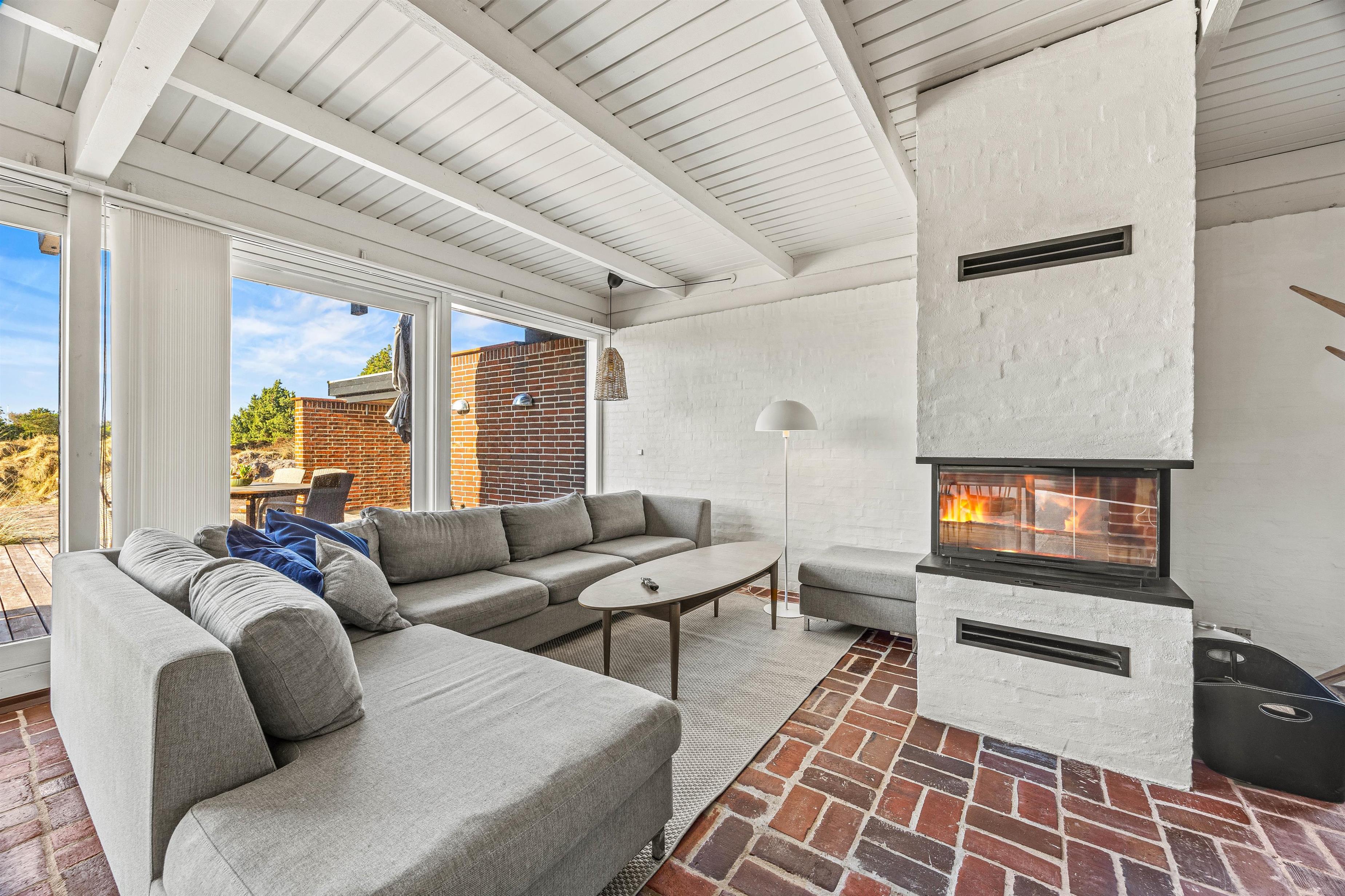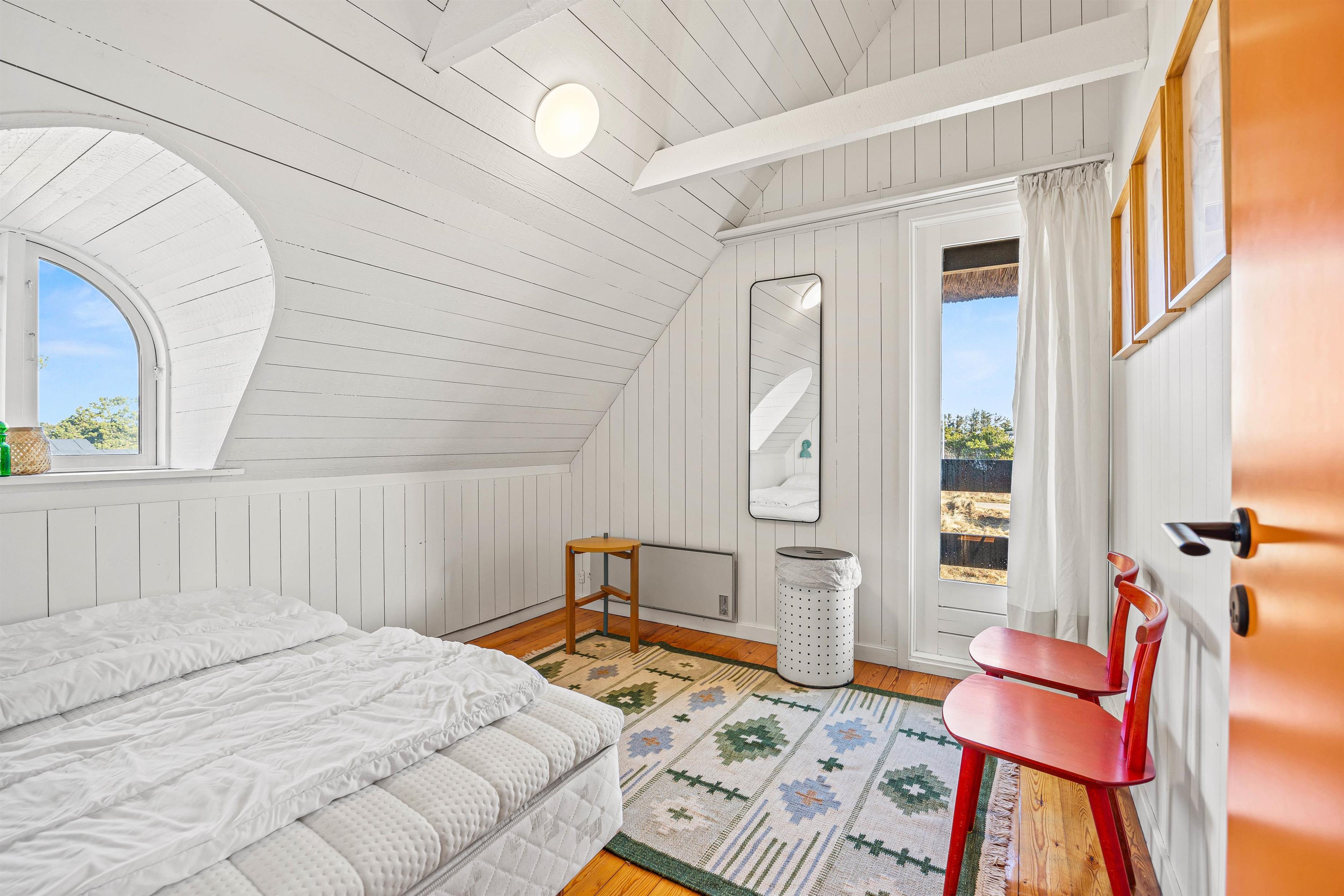 Det røde murstenshus med sit stråtækte tag inviterer til en afslappende sommerhusferie af den helt klassiske slags. Der hersker en charmerende atmosfære indenfor, som hjælpes godt på vej af de synlige loftsbjælker og den detaljerige indretning, blandt andet med brændeovn.