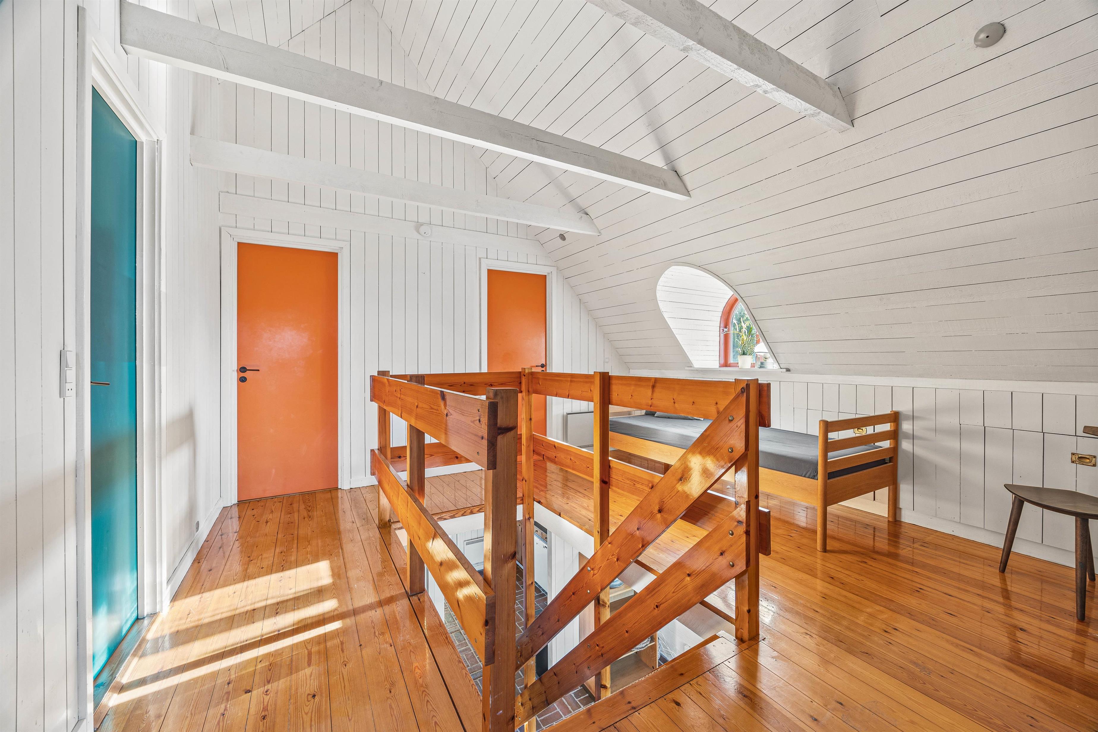 De 133 kvadratmeter er fordelt på to etager og er indrettet til 8 feriegæster. I stueetagen finder I en hyggelig stue med en flot udsigt igennem det store vinduesparti og en moderne brændeovn som giver varme og hygge på de kølige aftener, en rummelig spisestue, et funktionelt køkken og et badeværelse som blev renoveret i 2025. På første sal ligger de 4 soveværelser – alle 4 med dobbeltseng – alle med udgang til svalegang hvorfra I har en fænomenal udsigt over heden udover de 4 værelse finder I også et gæstetoilet som blev renoveret i 2025 på 1. salen.