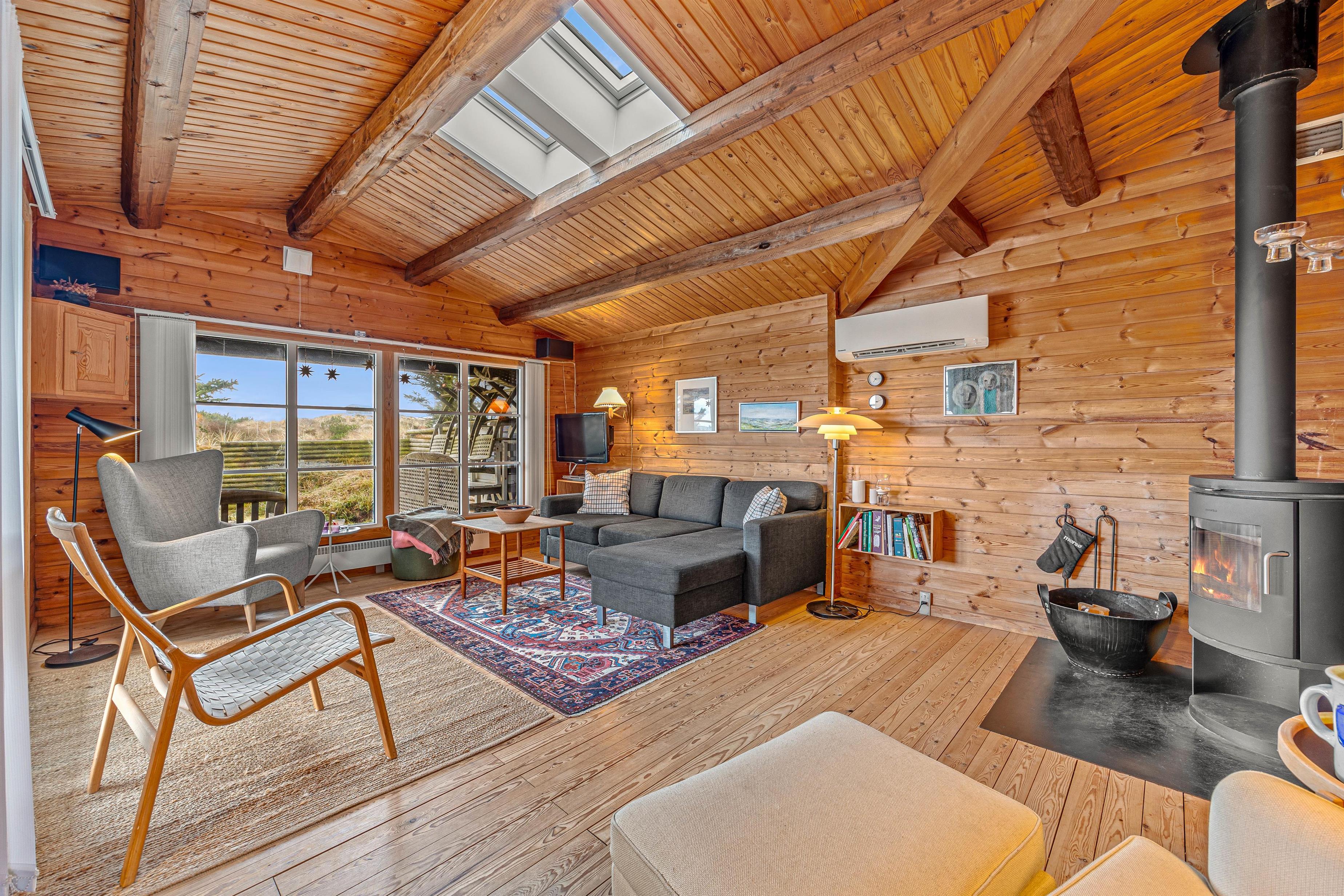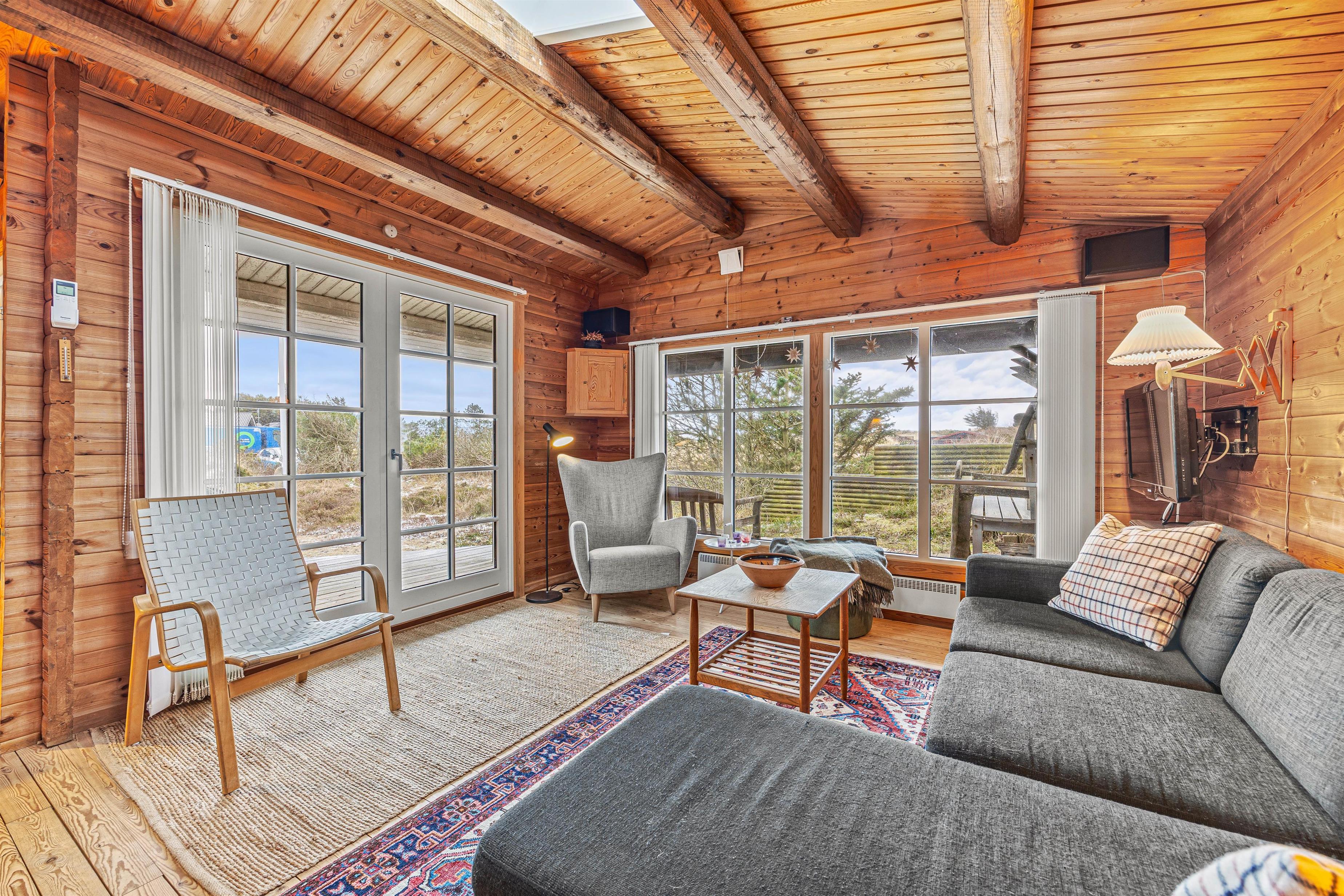 I naturskønne omgivelser kun 350 meter fra Vesterhavet finder I dette fine klassiske sommerhus. Her kan seks feriegæster holde en dejlig ferie i det hyggelige og personligt indrettede sommerhus. Udenfor kan I samles til bålhygge eller grillaften på terrassen. Familiens hund er velkommen, og tropper I op i el-bil, har I mulighed for at oplade den her.