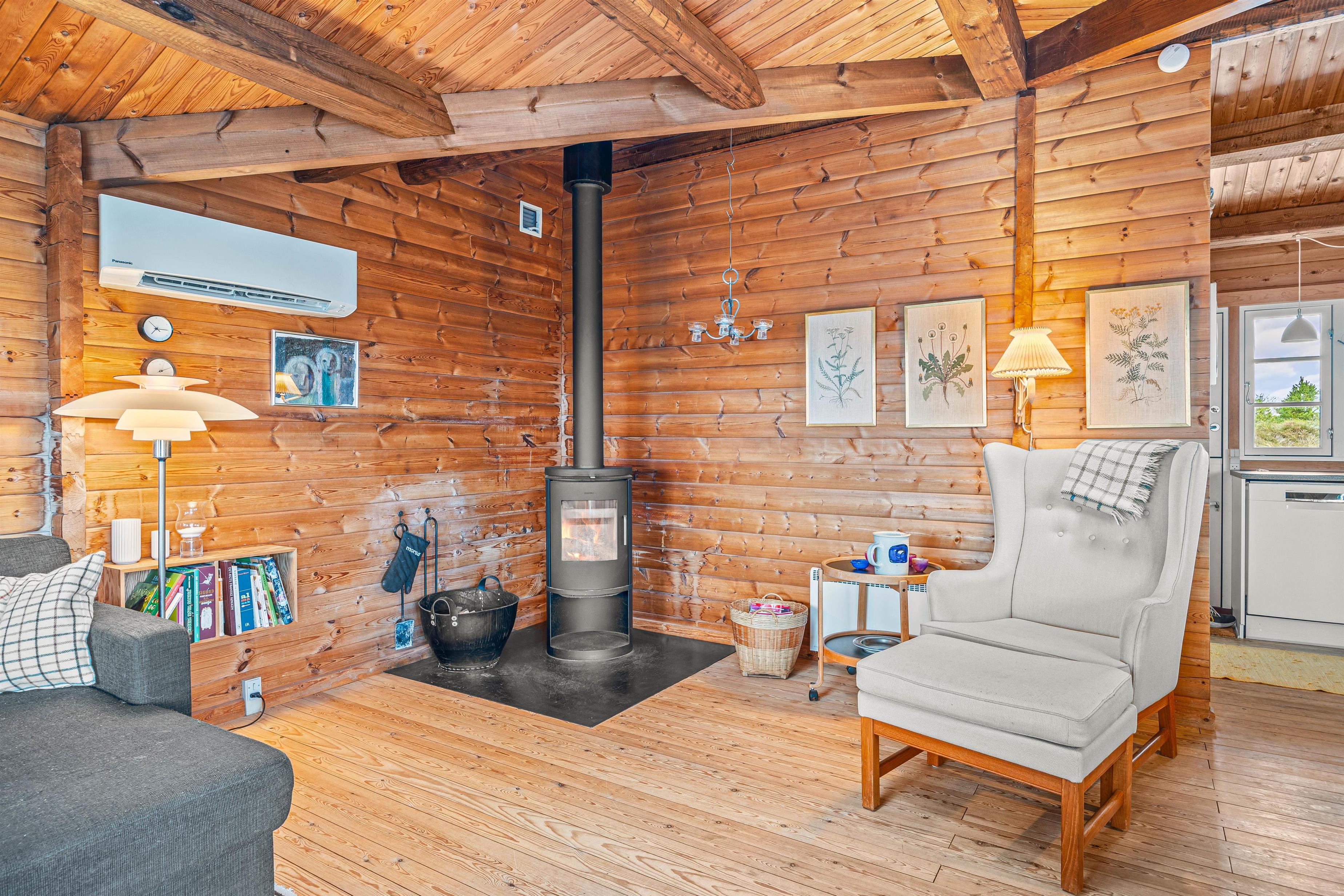 I det klassiske træbeklædte sommerhus kan der bo seks gæster fordelt på tre soveværelser, hvoraf det ene værelse er et ideelt børneværelse med køjesengen – det vil børnene helt sikkert se frem til. Sommerhusets samlingspunkt og hjerterum er det hyggelige køkken-opholdsrum, hvor der er højt til loftet og smukke spær i loftet. Gennem de store vinduer i stuen skinner det naturlige lys smukt ind, mens den bløde hjørnesofa venter på jer. Her kan I samles om et spil, læse den medbragte ferielæsning i den behagelige lænestol foran den knitrende brændeovn.