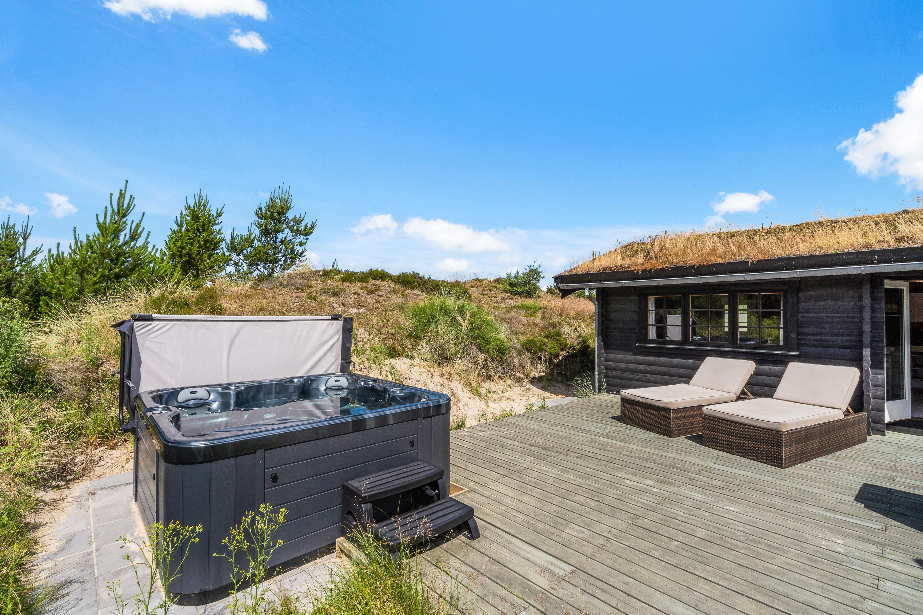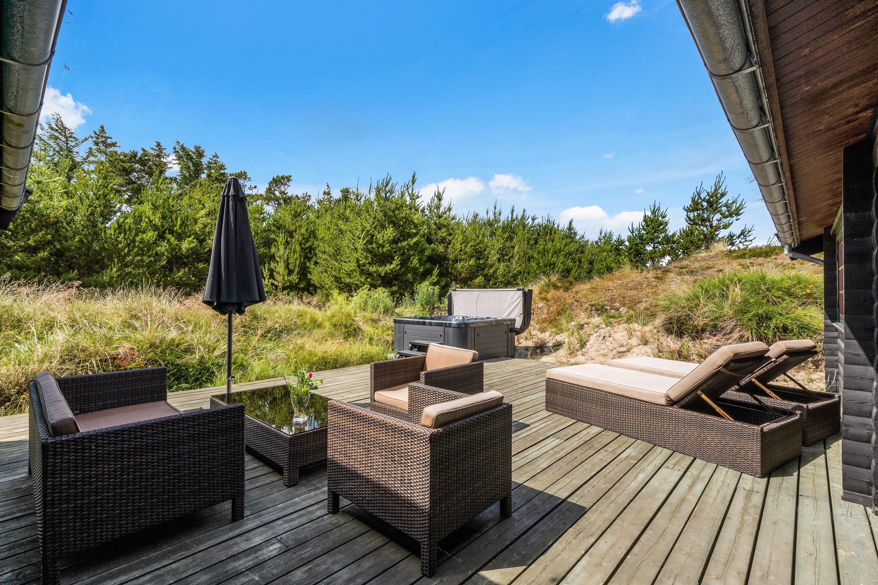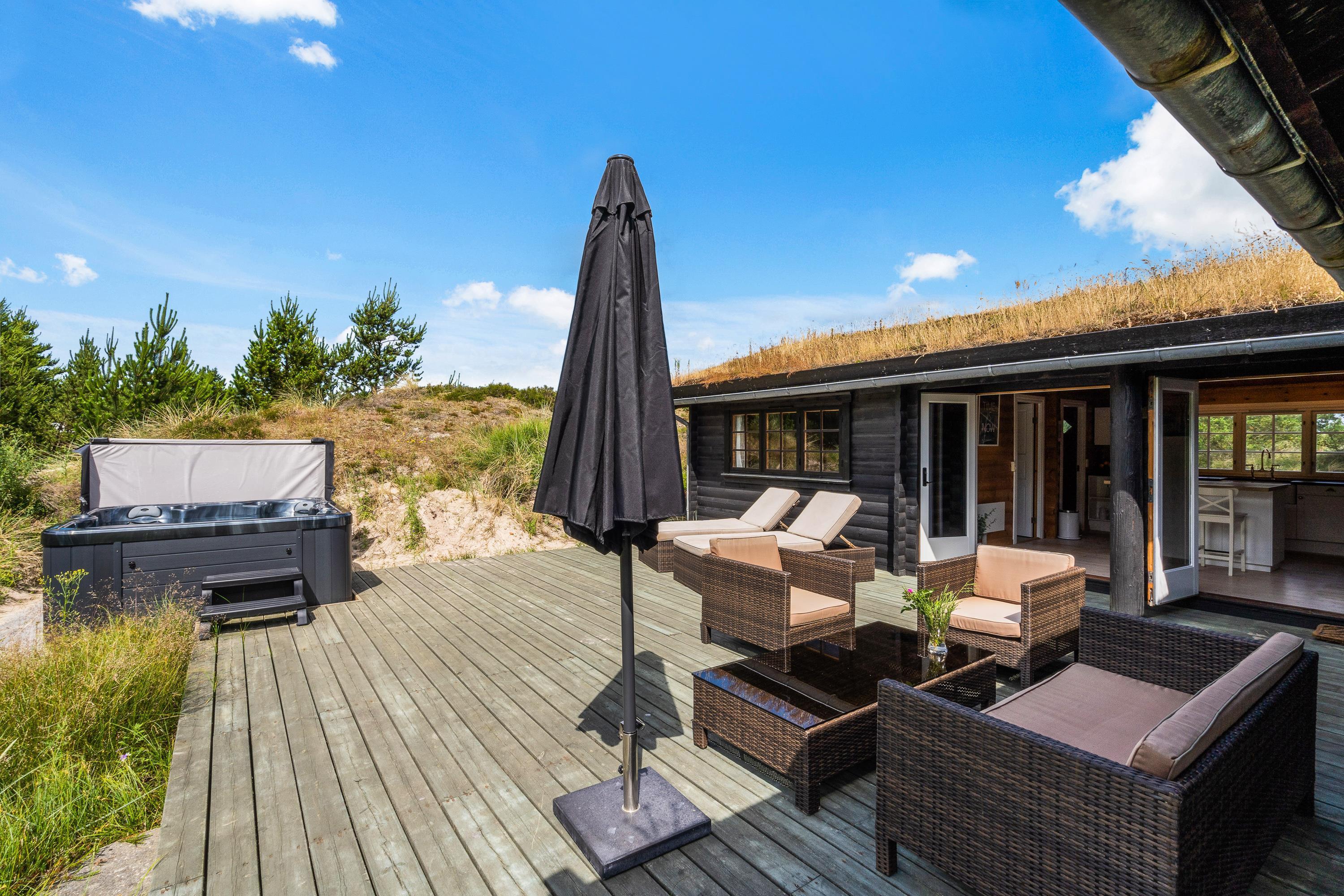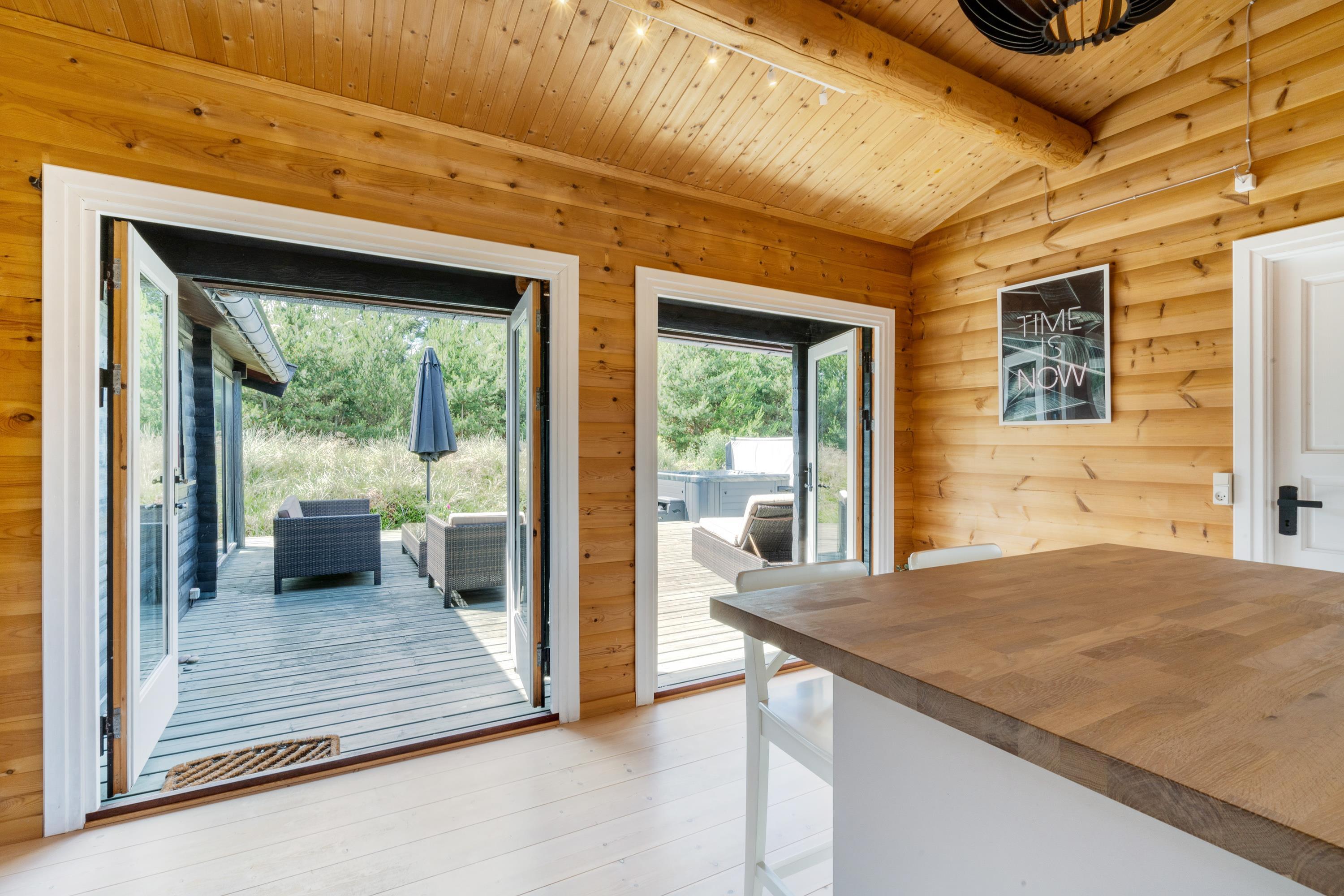 På terrassen finder I desuden et af sommerhusets absolutte highlights. Her står et stort udendørs spabad, som giver jer mulighed for at nyde lidt ekstra wellness på ferien – mens I nyder udsigten til den uspolerede natur.