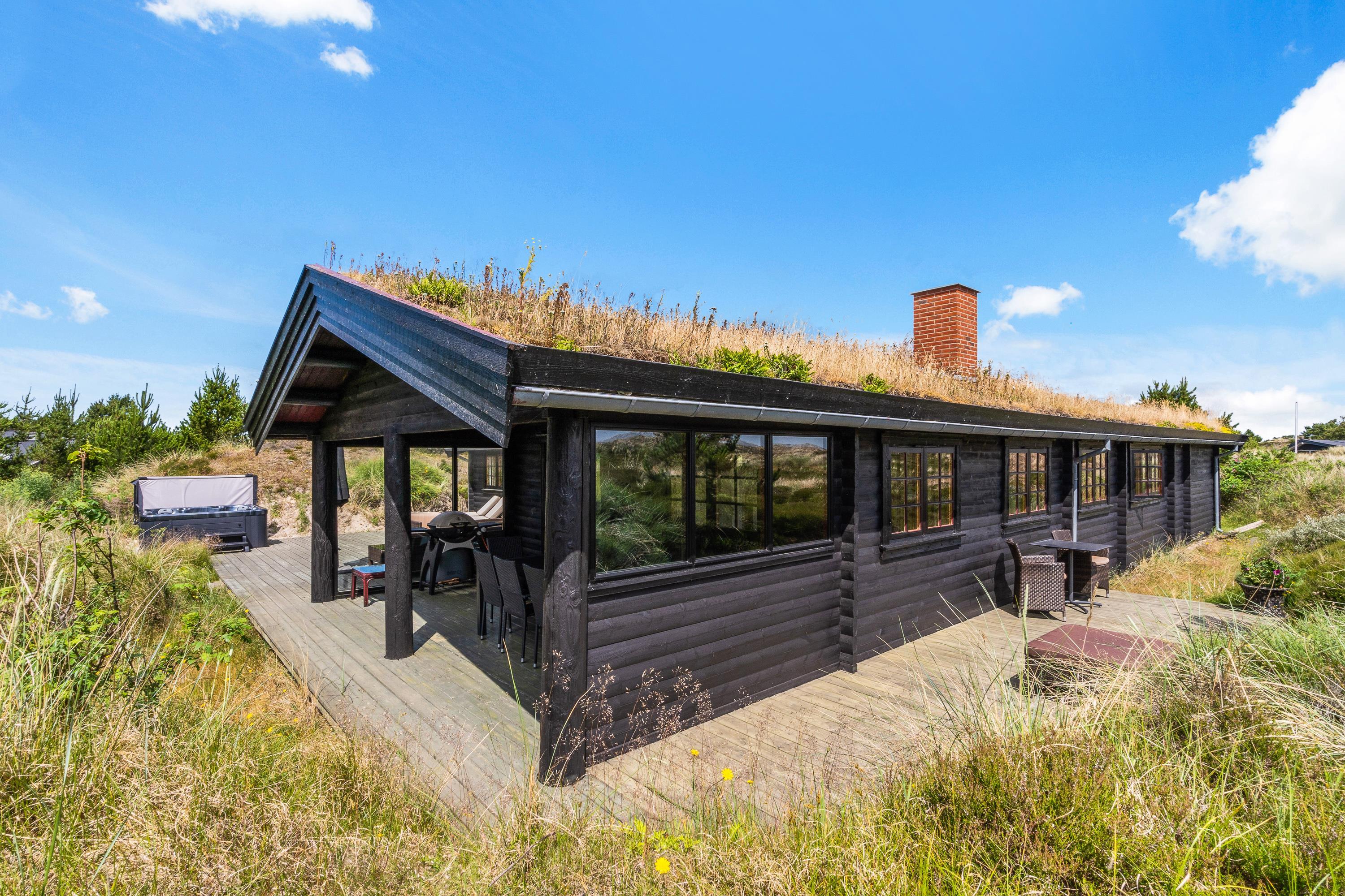 På en kæmpestor naturgrund i Grærup ligger dette flotte sommerhus til 8 personer. I vil hurtigt falde til i den charmerende indretning i naturmaterialer, og på den store træterrasse med en overdækket del. Derudover er der et udendørs spabad, som er ren luksus på en varm sommerdag. Fra terrassen har I en fantastisk, helt uforstyrret udsigt til den lyngklædte hede!