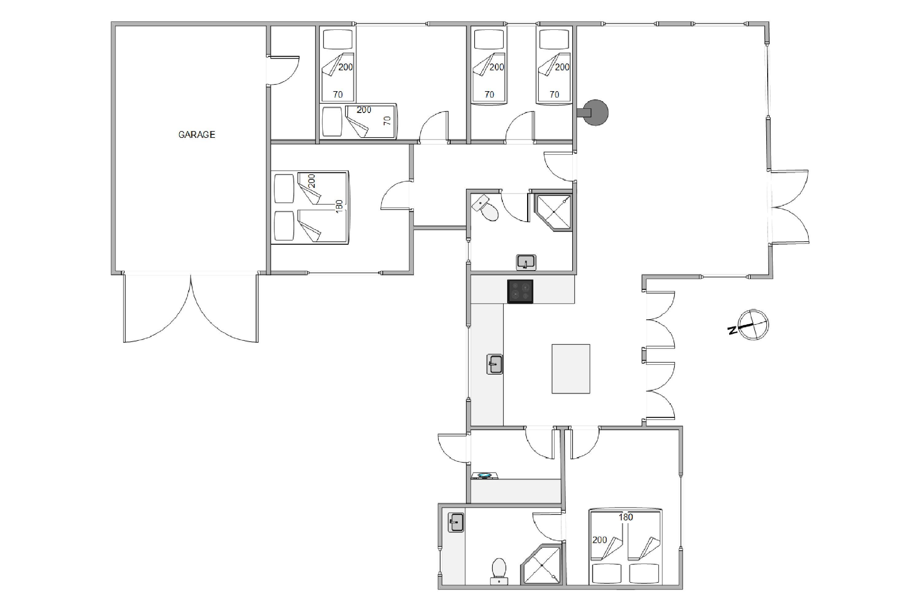 Der er også tænkt på det praktiske; køkkenet er udstyret med opvaskemaskine, og der er vaskemaskine i entréen. Med 2 badeværelser – begge med gulvvarme – slipper I for lange køer til toilettet, selv når I er af sted med 8 personer. Der er god skabsplads i soveværelserne, så I kan pakke alle jeres feriesager ud og føle jer godt hjemme.