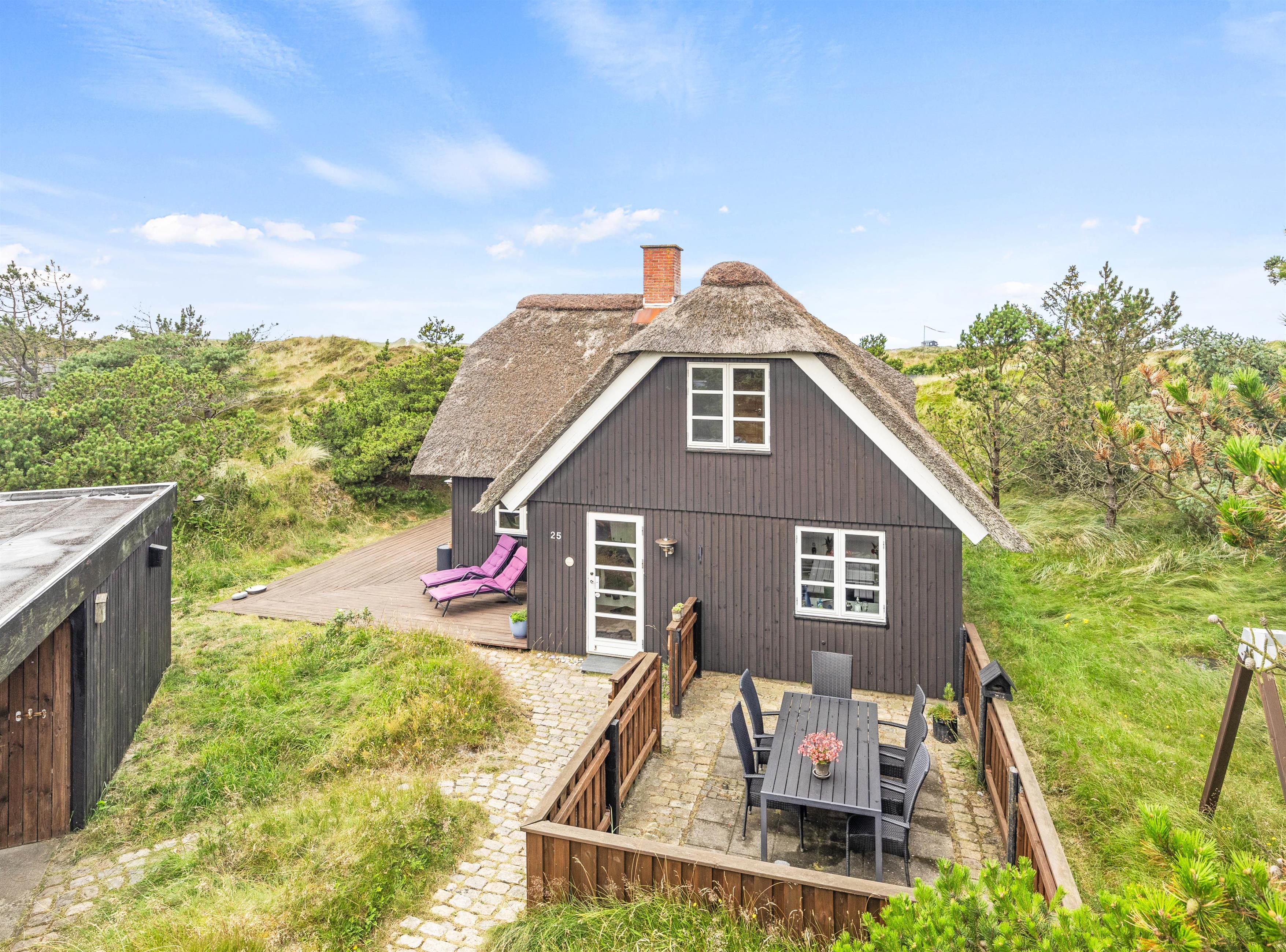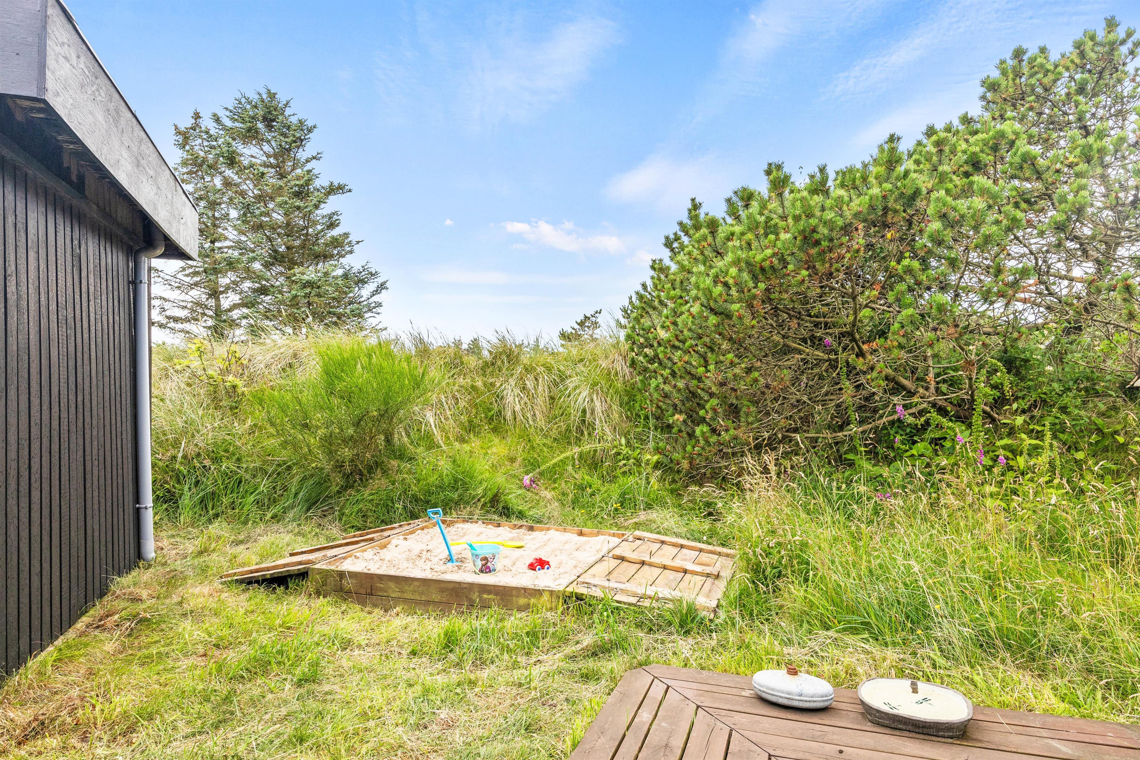 Sommerhuset har 2 gode terrasser, hvoraf den ene er afskærmet. Her kan I grille jeres yndlingsretter på den tilgængelige grill, mens børnene leger i den nærtliggende sandkasse eller svinger sig i gyngen. Omringet af den rolige natur der kendetegner dette område, er terrassen et ideelt sted for både morgenkaffen, som kan nydes i ly af morgenduggen, og de lange grillaftener under stjernerne.