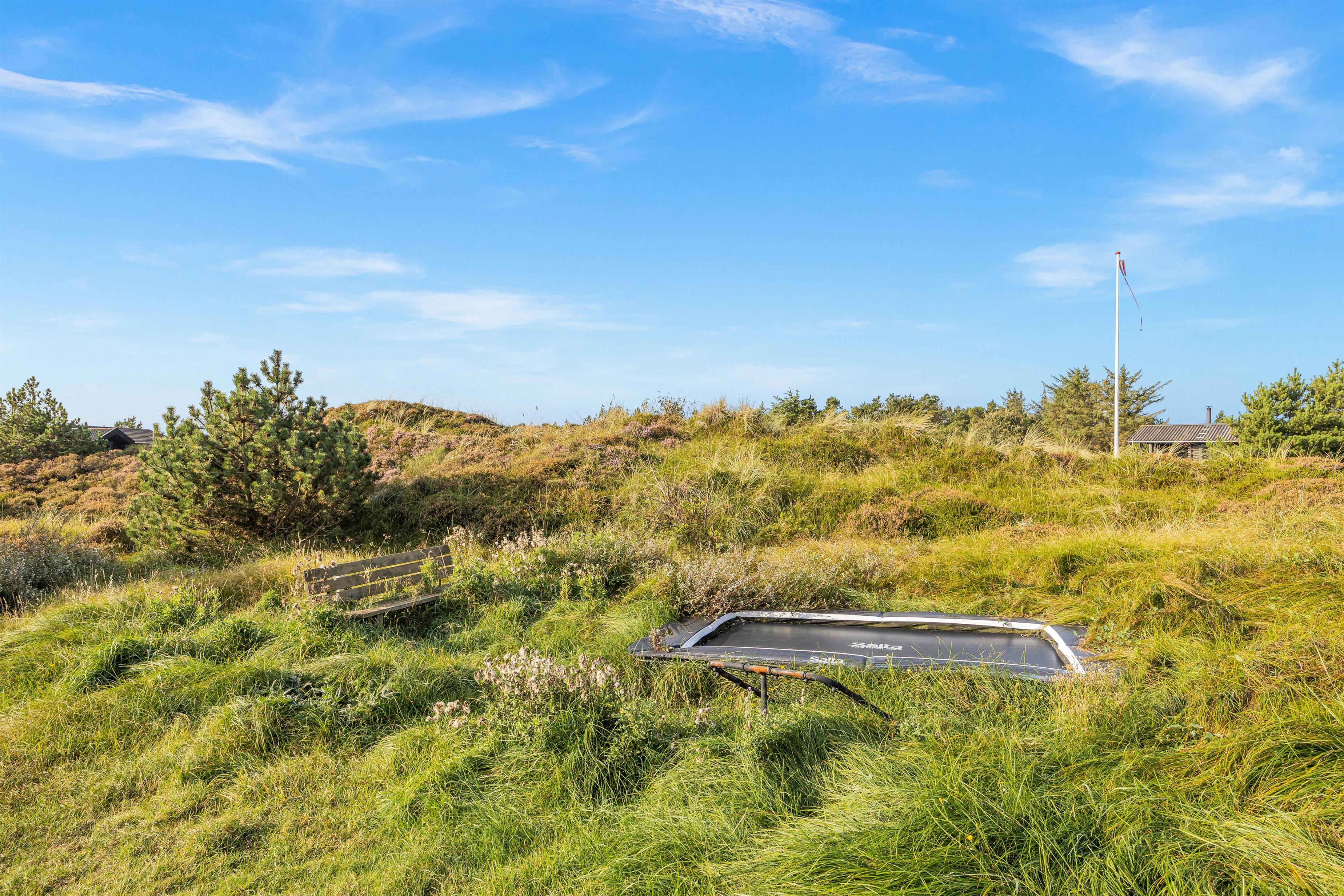 På den kuperede naturgrund kan I for alvor opleve og studere naturen tæt på. Børnene kan brænde energi af på trampolinen, imens I hygger jer i de komfortable solvogne på en af terrasserne. I overskyet vejr, eller når I trænger til skygge, kan I opholde jer under den delvise overdækning, så I kan altid finde en god krog at nyde havluften fra. Sidst på dagen kan I tænde op i grillen til et lækkert grillmåltid, og derefter måske trække om på terrassen mod vest og nyde solnedgangen med et køligt glas vin.