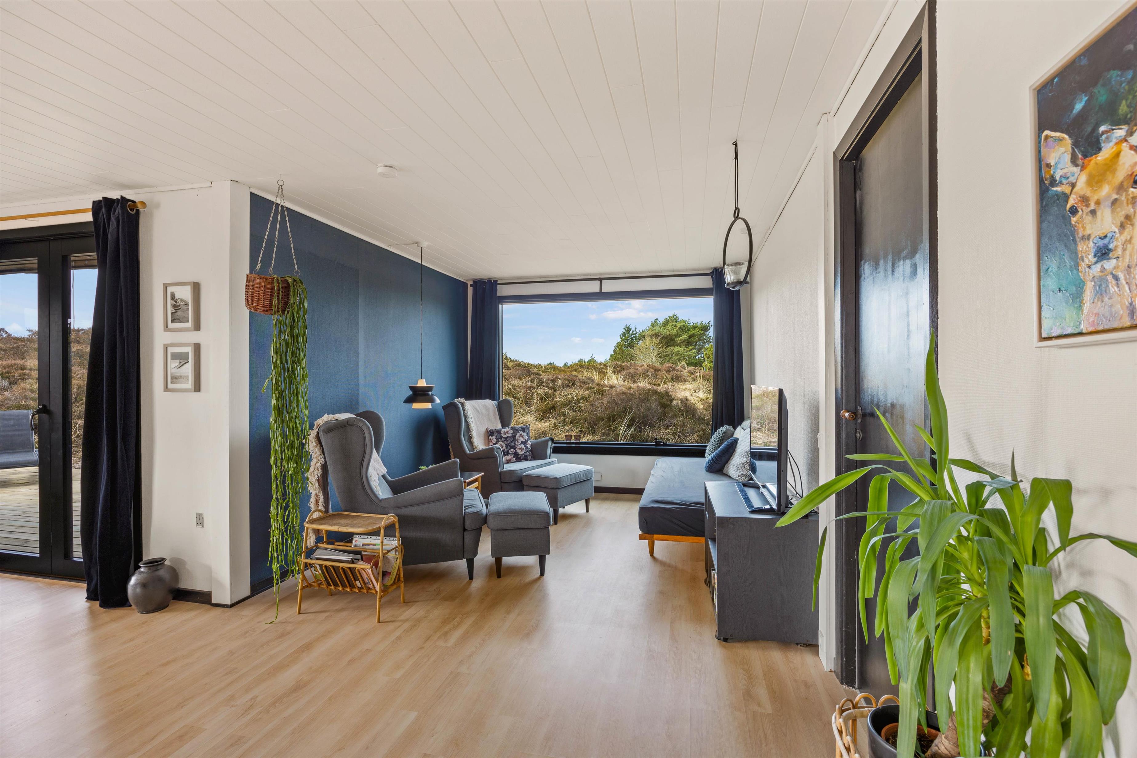 Velkommen til dette moderne og rustikt indrettede feriehus, kun 700 meter fra Vesterhavet. Her er 120 rummelige kvadratmeter til 4 personer, så I har alle muligheder for en afslappende vestkystferie. Den kuperede naturgrund indeholder essensen af vestjysk natur, nemlig lyng og klitter, og med sit græstag falder feriehuset naturligt sammen med omgivelserne. I sensommeren kan I – som vejnavnet antyder – også være heldige at finde revlingebær lige udenfor døren.
