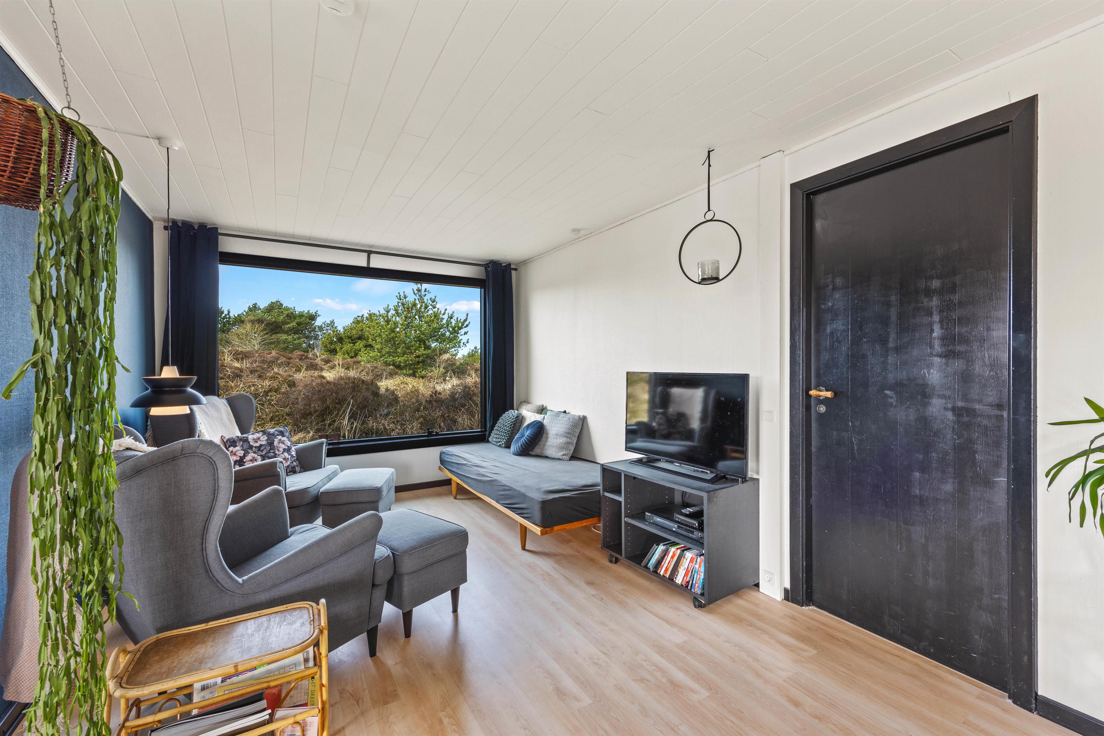 Fra stuen kan I nyde udsigten over den omkringliggende natur, når I ikke er ude i den. Får I brug for at slappe af midt på dagen, er der en separat afdeling med en daybed og et par gode lænestole.