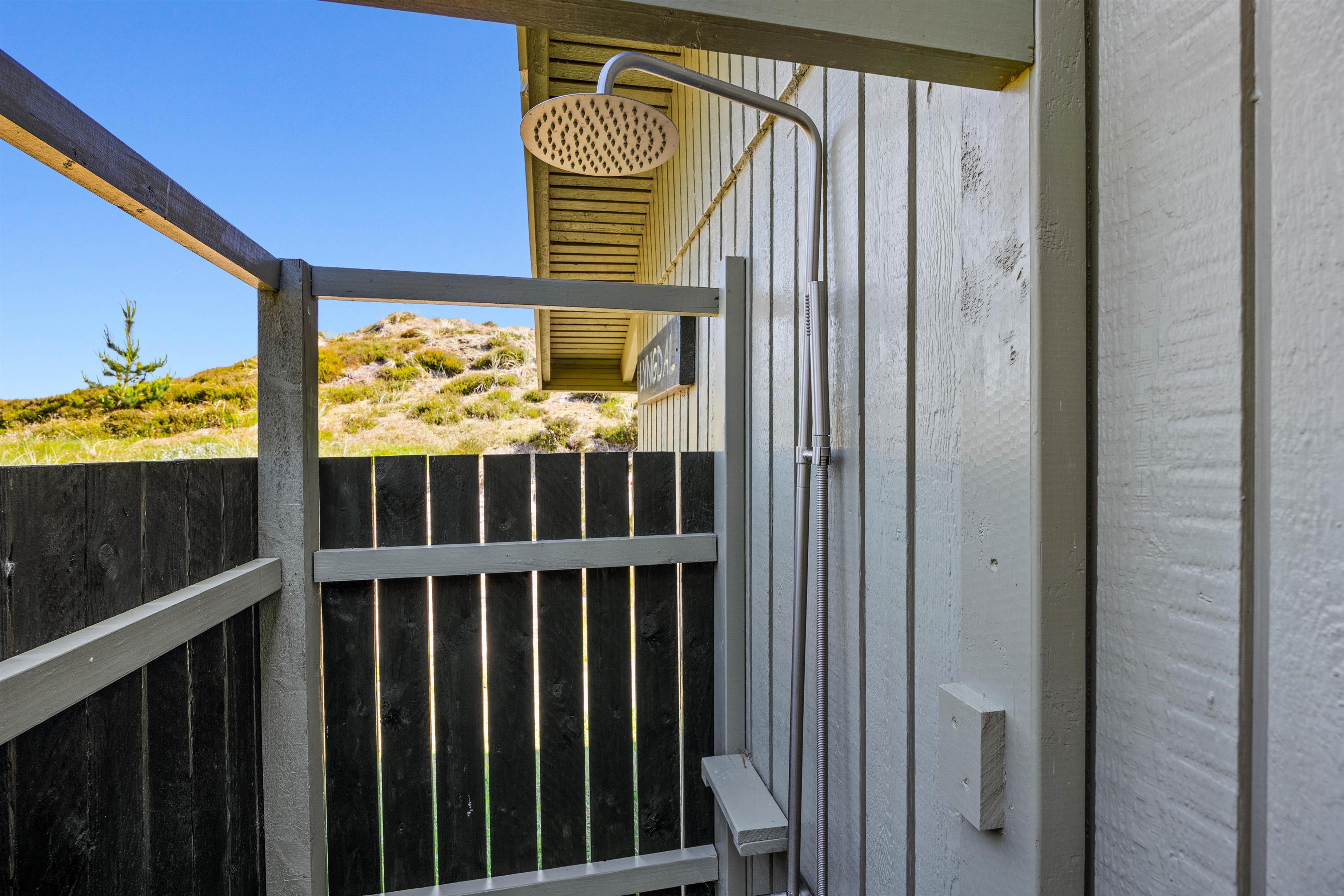 På terrassen finder I desuden en udebruser, ideelt til at skylle sandet af sig efter en dejlig dag på stranden. Udebruser er lukket fra 1. november til 1. april på grund af frostsikring.