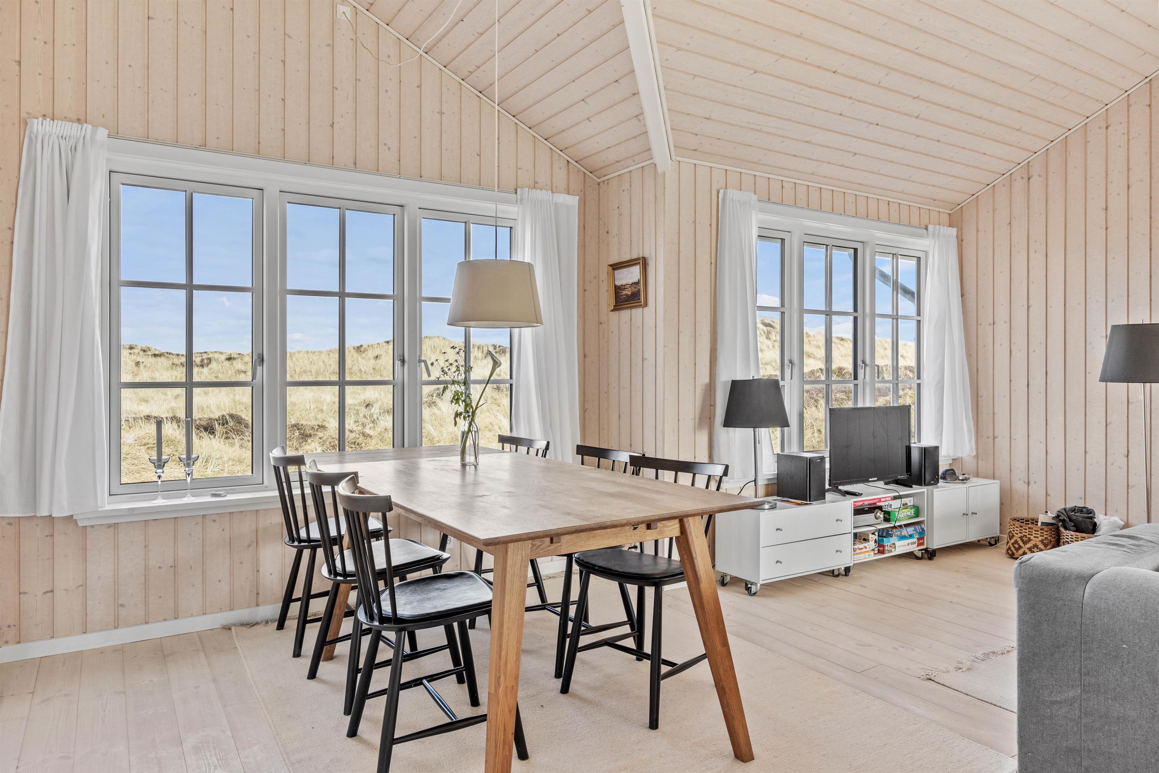 Det skønne feriehus bærer indvendigt stort præg af lyse farver, mange træelementer og et lækkert og moderne møblement med kvaliteten i fokus. På de 94 m² finder I god plads til 6 personer, og de høje trælofter gør huset endnu mere rummeligt.