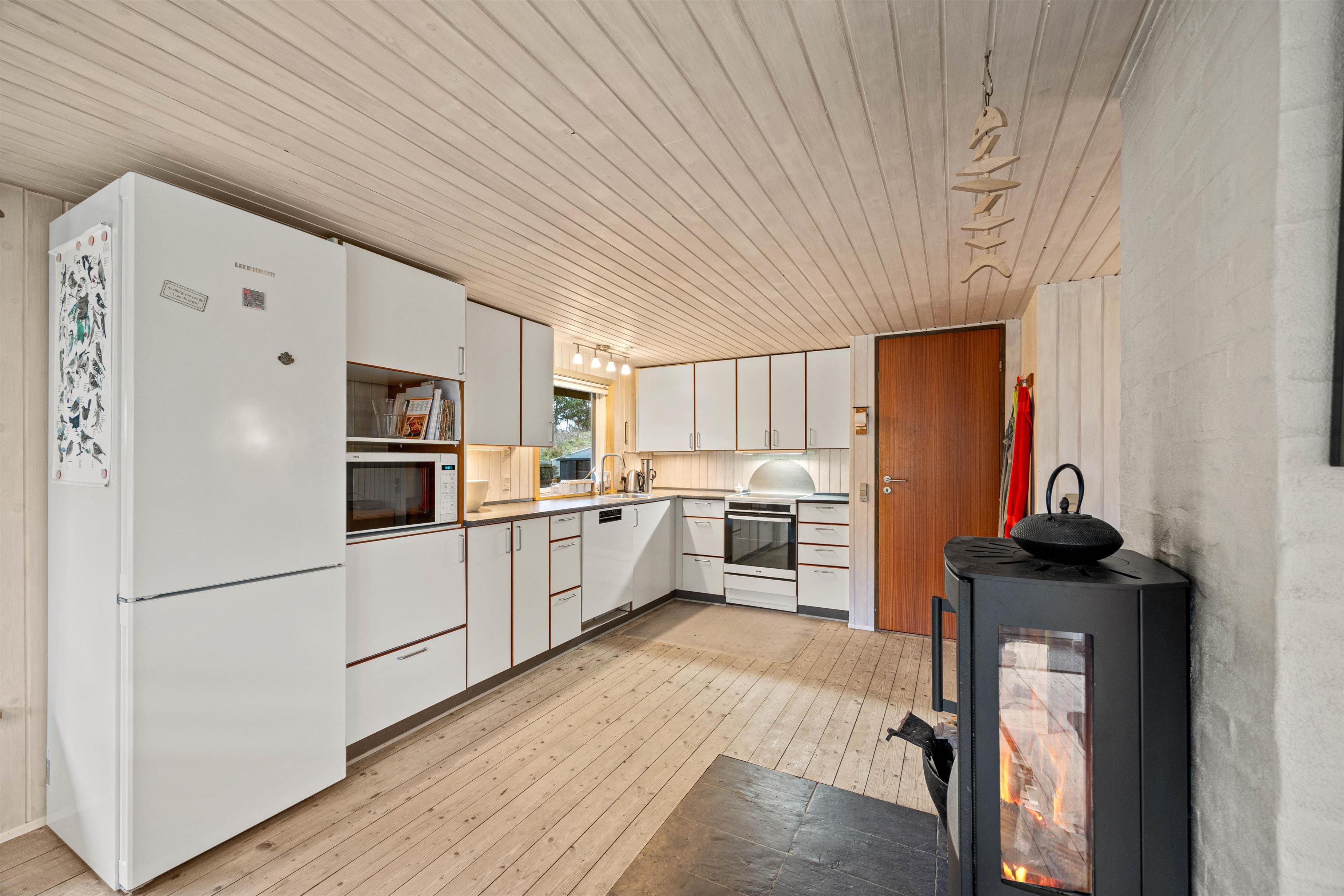 Opholdsstuen er udstyret med en brændeovn*, der giver hyggelig varme efter en lang gåtur på stranden. Samtidig sørger den moderne varmepumpe for behagelige temperaturer året rundt, ligesom der er gulvvarme i badeværelset.