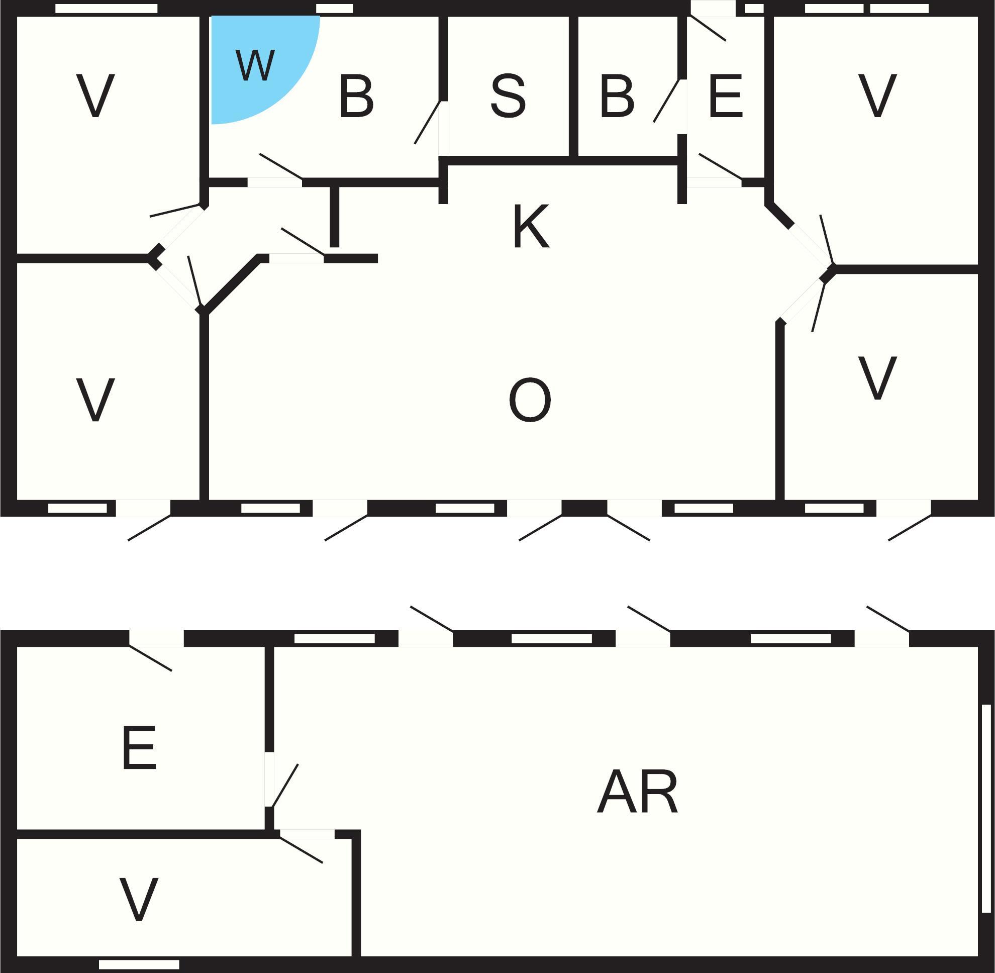 4 Soveværelser: (1DS+1S)+(1DS)+(1DS)+(1DS)