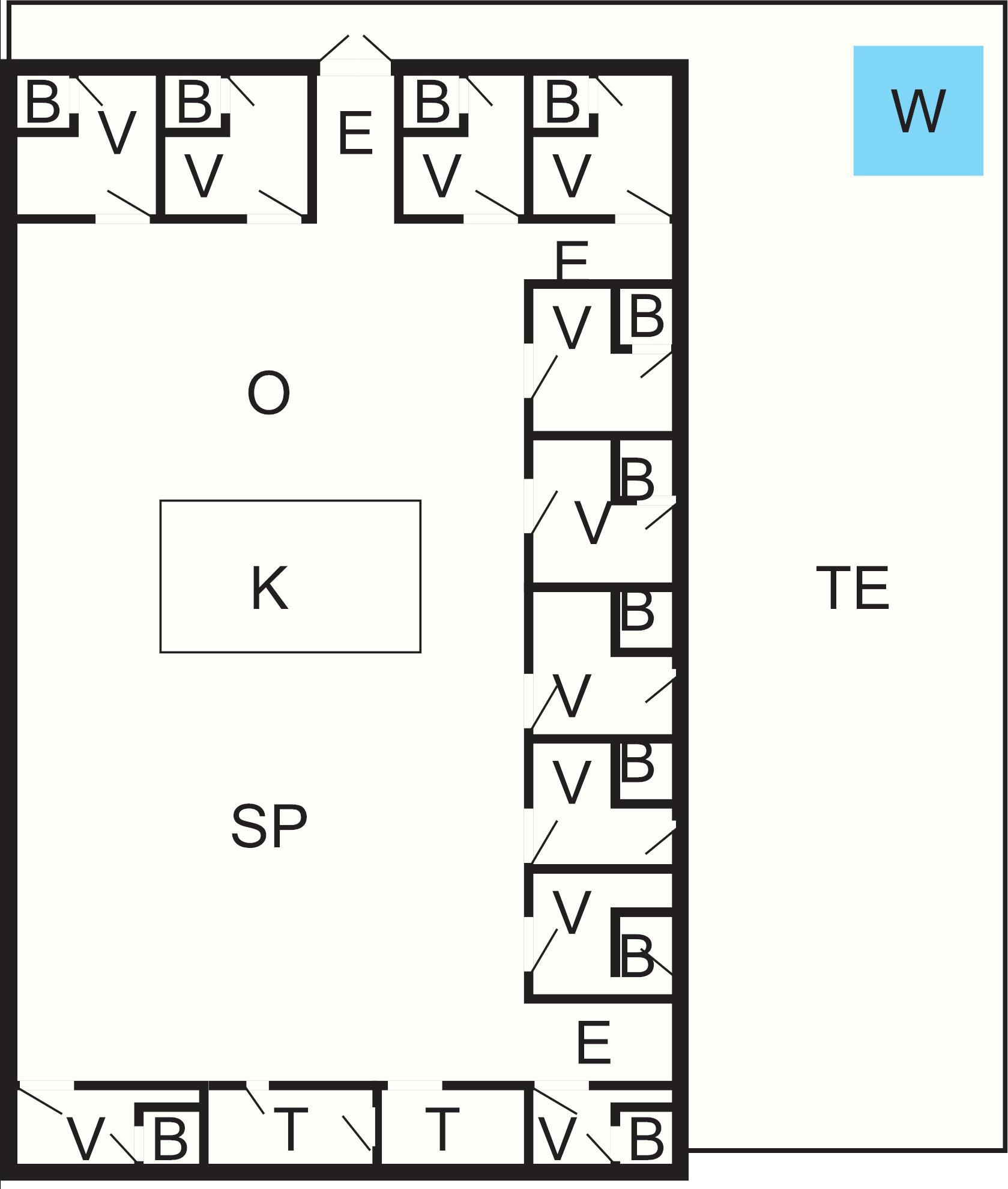 11 Soveværelser: (1DS)+(1DS)+(1DS)+(1DS)+(2S)+(2S)+(2S)+(2S)+(2S)+(2S)+(2S)