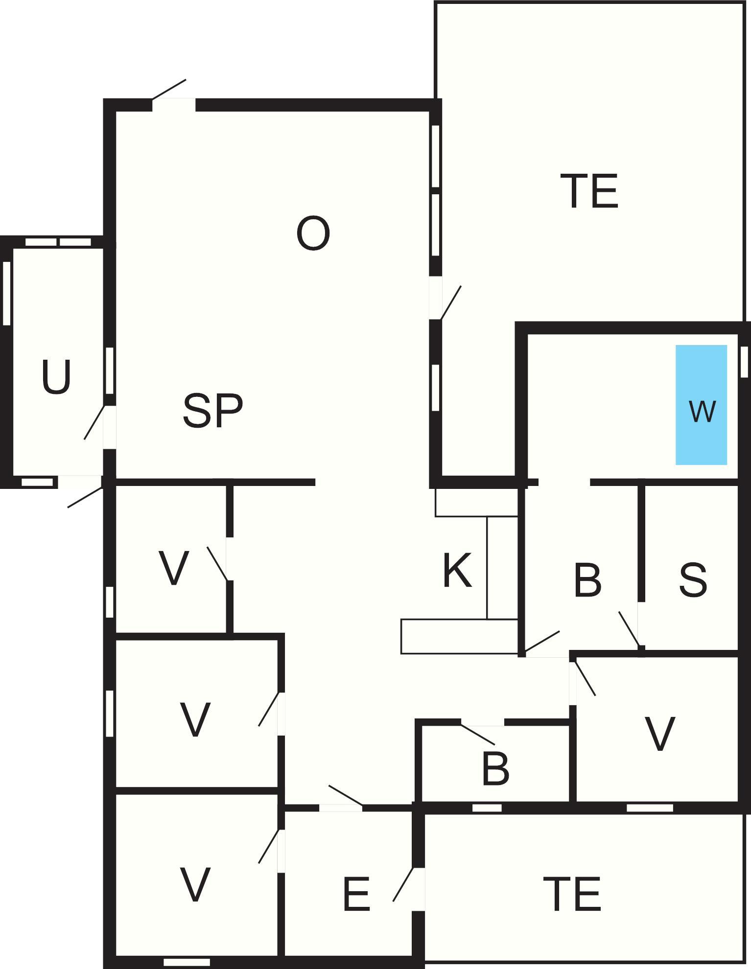 4 Soveværelser: (1DS)+(1DS)+(2S)+(4K), barneseng