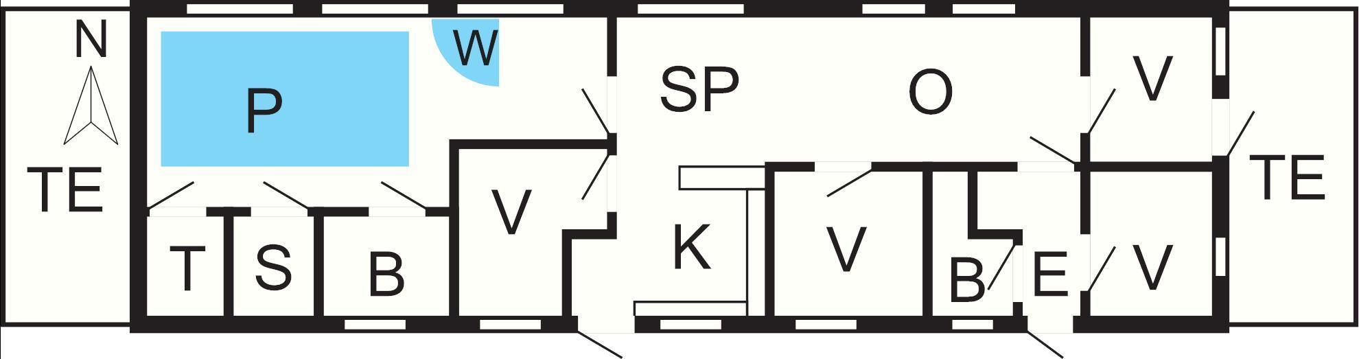 I poolafdelingen findes skøn swimmingpool, spabad samt sauna. Her er rig mulighed for afslapning samt selvforkælelse. Mellem stue og poolafdelingen er der store vinduespartier, så det er nemt at holde øje med f.eks. børnene mens de bader. Poolen opvarmes også af energibesparende varmepumpe.