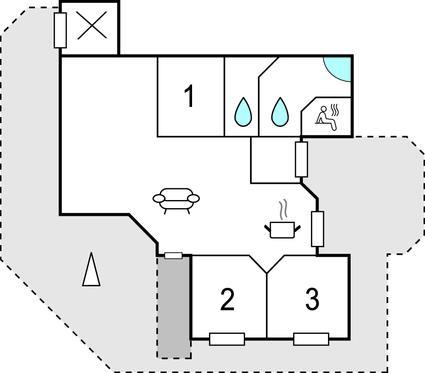 Badeværelse 9m2 (nr. 1) - WC. Varmt og koldt vand. Bruser