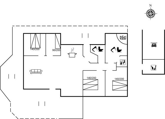 Der er i alt 4 soveværelser. Sovepladserne fordeler sig på: 6 sovepladser i dobbeltsenge. 1 soveplads i enkeltseng. Derudover er der 1 stk. barneseng.