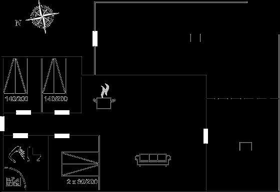 Der er i alt 3 soveværelser. Sovepladserne fordeler sig på: 6 sovepladser i dobbeltsenge.