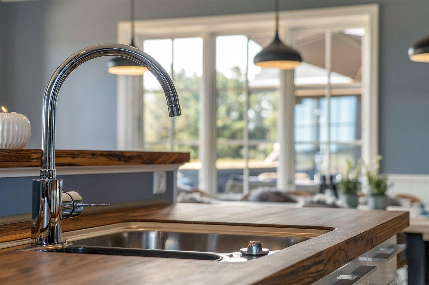 Køkkenet er udstyret med 2 køleskabe. Der er 4 induktionskogeplader, varmluftovn, mikrobølgeovn samt opvaskemaskine.