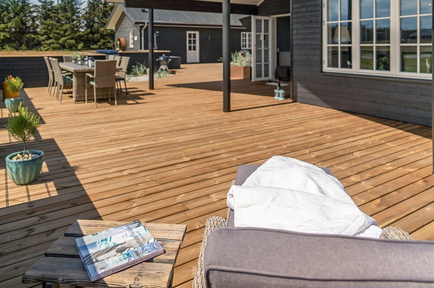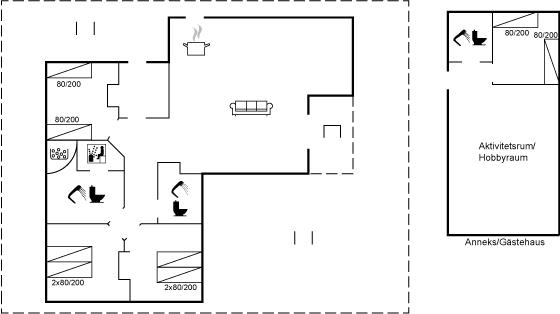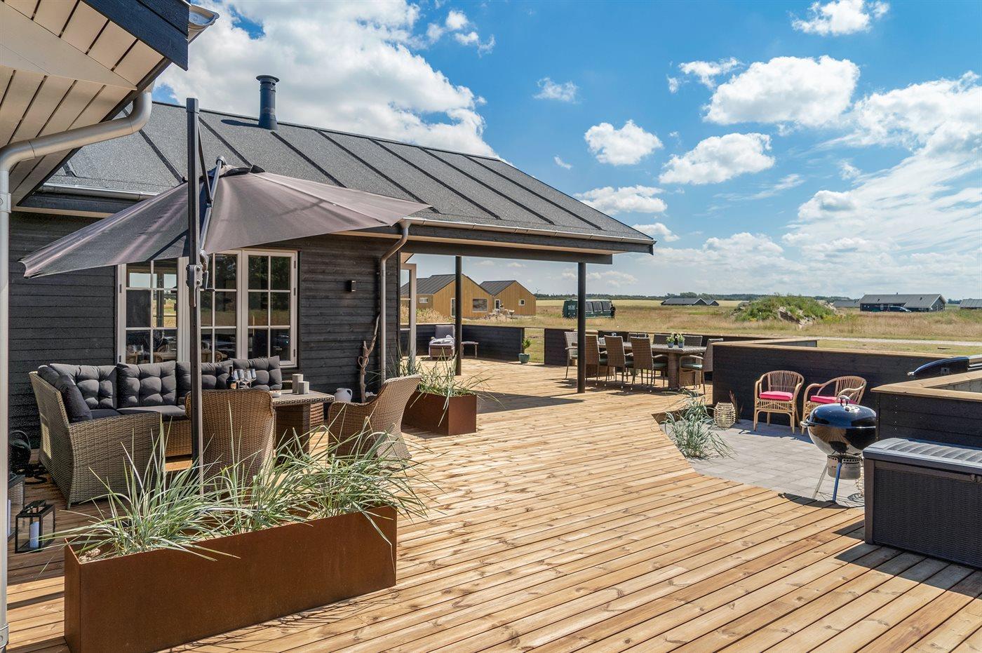 Helt nybygget (2019) og rummeligt sommerhus med mange aktivitetsmuligheder beliggende på en meget stor grund i et nyt sommerhusområde under opførelse. Det naturskønne område byder på 3 søer og ligger i kort afstand til Vesterhavet og dejlig badestrand. Til huset hører et stort anneks med aktivitetsrum, bad og toilet samt et soveværelse, hvor 2 af sovepladserne befinder sig.