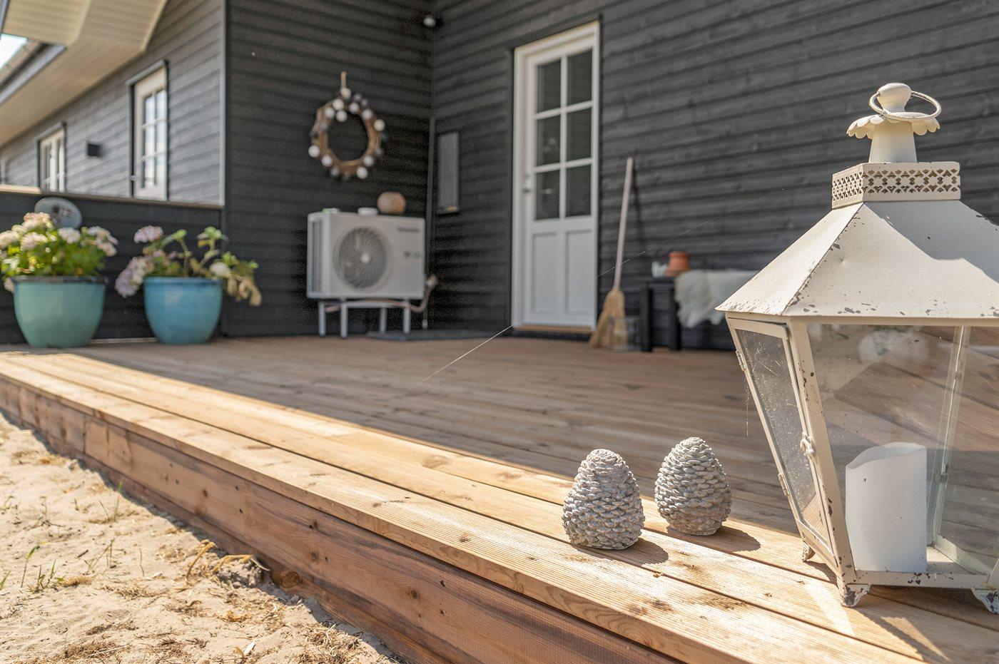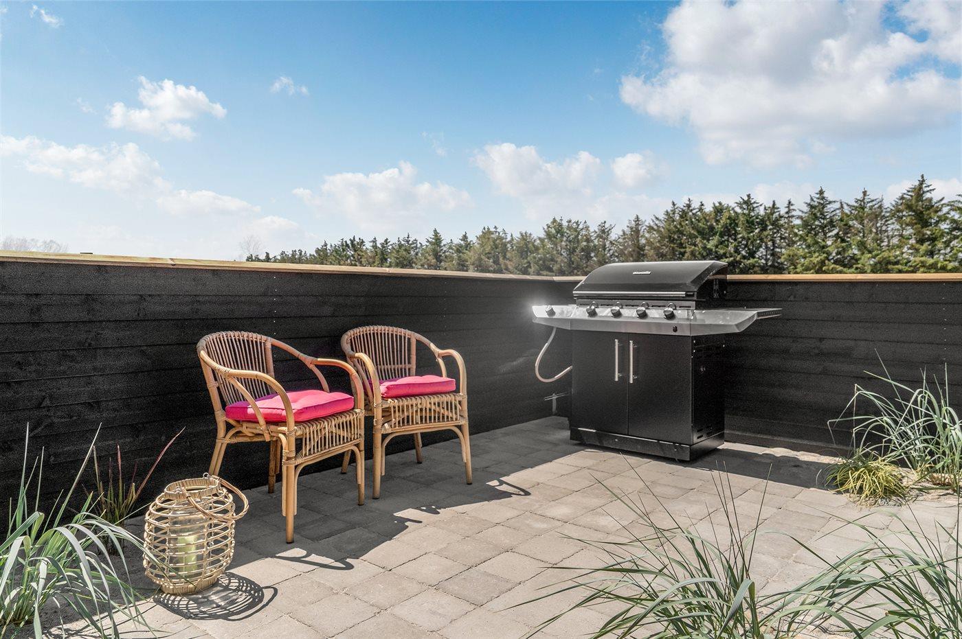 Ferieboligen er beliggende på en 2100 m² stor naturgrund. Der er 1500 m til havet. Nærmeste forretning er beliggende i en afstand af 1200 m. Til ferieboligen hører 200 m² terrasseareal. Desuden er der 37 m² overdækket terrasse. Gynge. Bålsted. Udendørs bruser. Parkering ved ferieboligen.