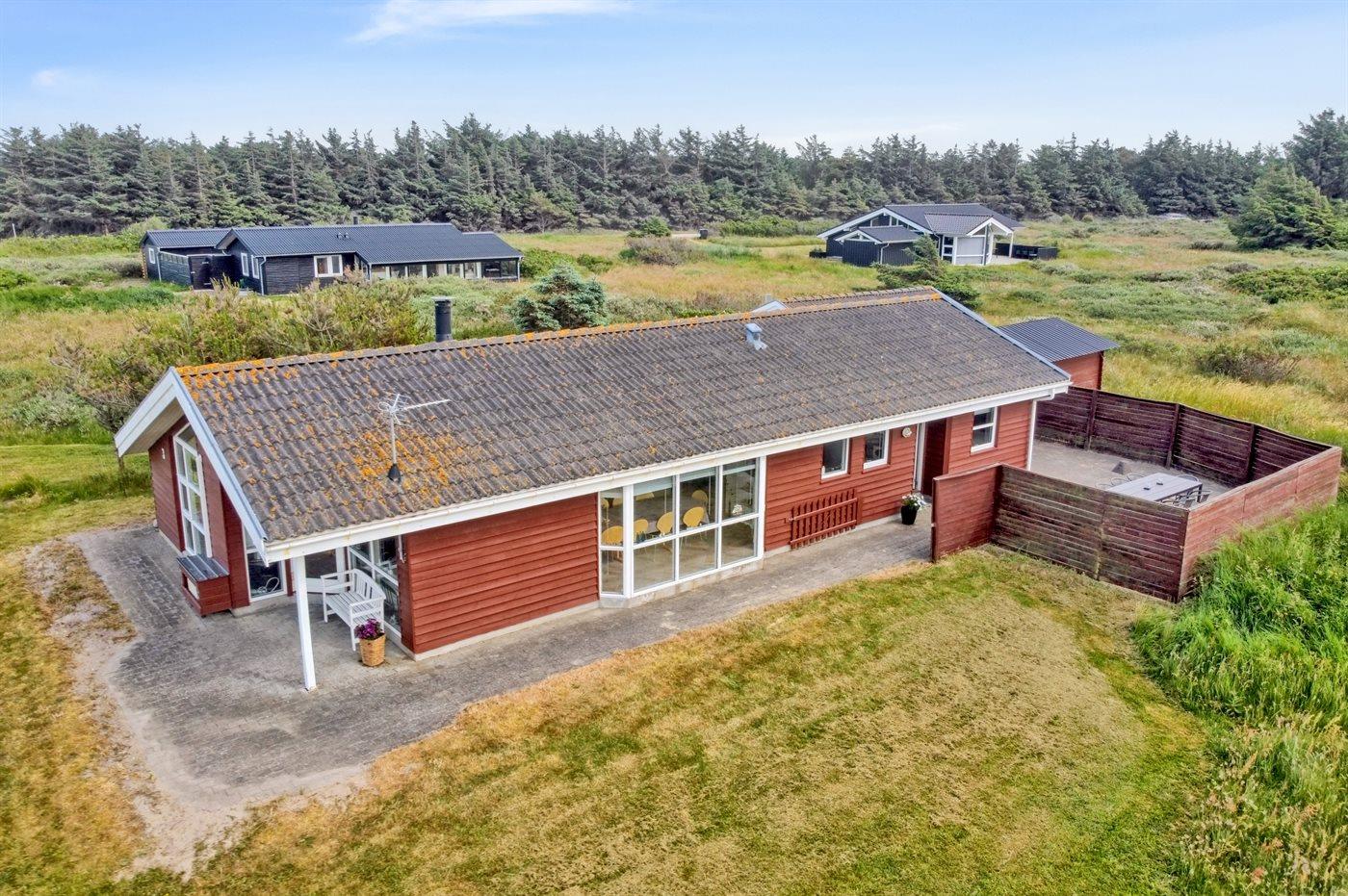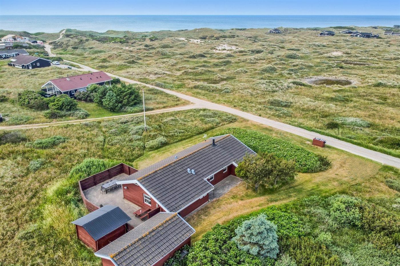 Ferieboligen er beliggende på en 2500 m² stor naturgrund. Der er 250 m til havet. Nærmeste forretning er beliggende i en afstand af 800 m. Til ferieboligen hører åbent terrasseareal. Grill til rådighed. Parkering ved ferieboligen.