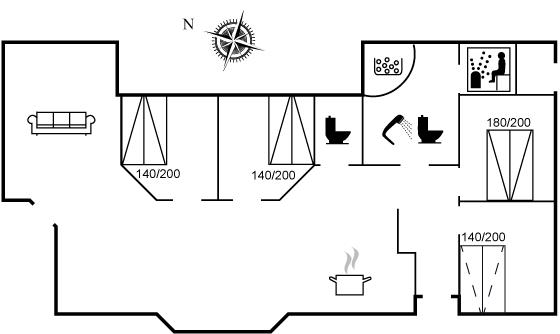 Der er i alt 4 soveværelser. Sovepladserne fordeler sig på: 6 sovepladser i dobbeltsenge. 2 sovepladser i sovesofa (enkelt). Derudover er der 1 stk. barneseng.