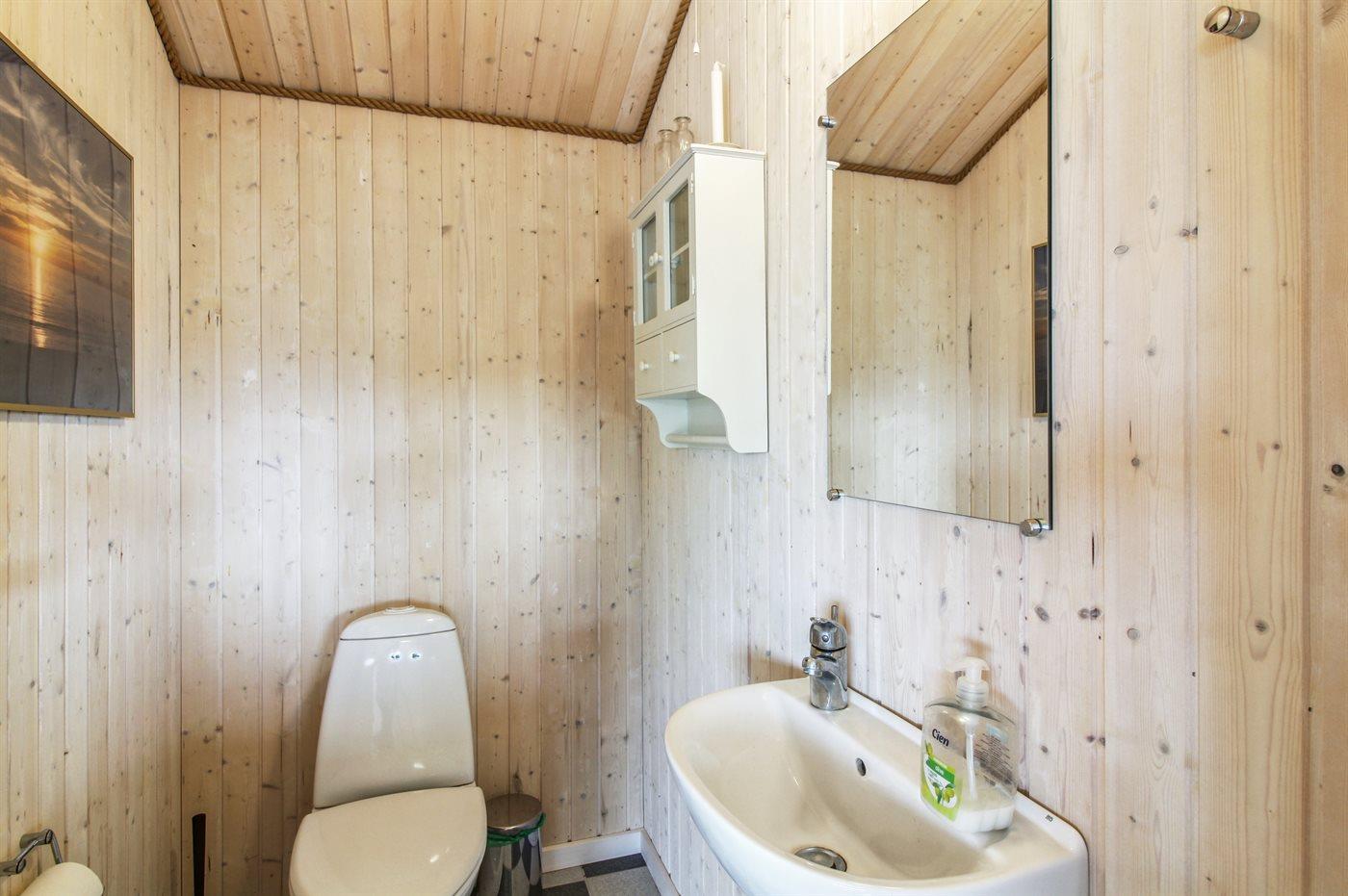 Der er 1 badeværelse med bruseniche og 2 toiletter, heraf 1 gæstetoilet. Der er gulvvarme på 1 badeværelse. I saunaen er der mulighed for afslapning.