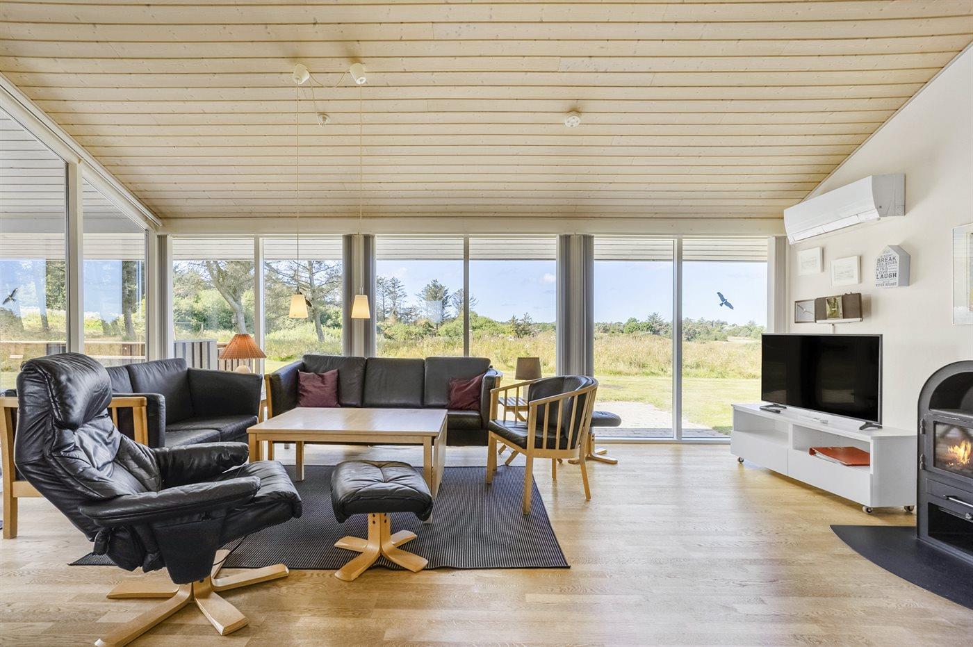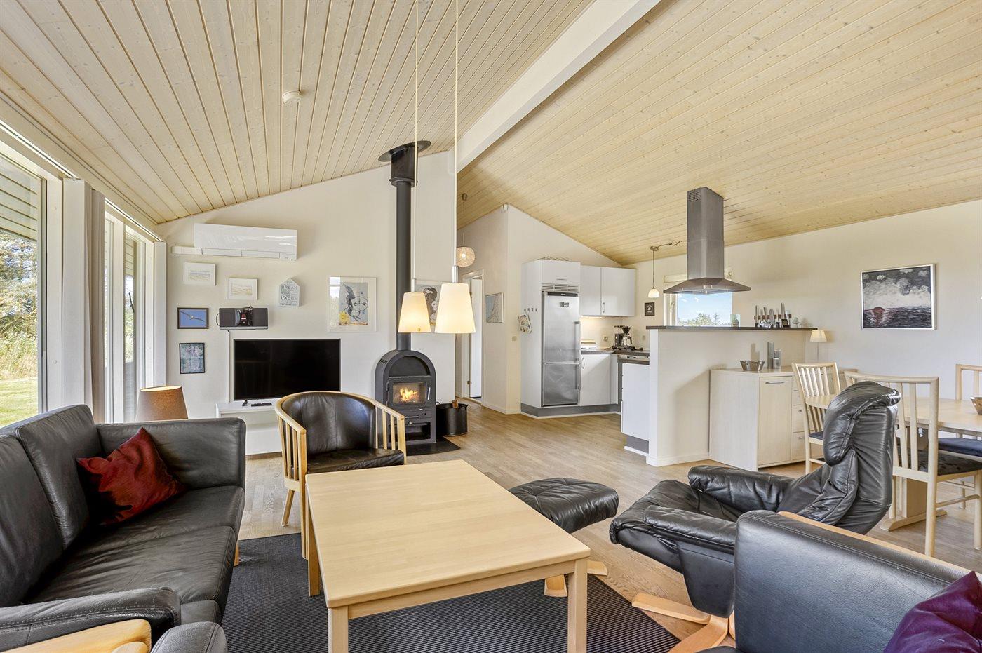 Her kan du gå tur i skoven, omkring søen eller fortsætte hele vejen ned til Vesterhavet. Efter en god, lang dag i det fri kan du komme hjem og nyde en kop kaffe foran brændeovnen eller spille et spil. Til huset hører flere terrasser, både med morgensol og aftensol. På de mindre gode dage er der fortsat mulighed for at sidde ude, grille og nyde aftensmaden, da der også findes en stor, overdækket terrasse mod vest.
