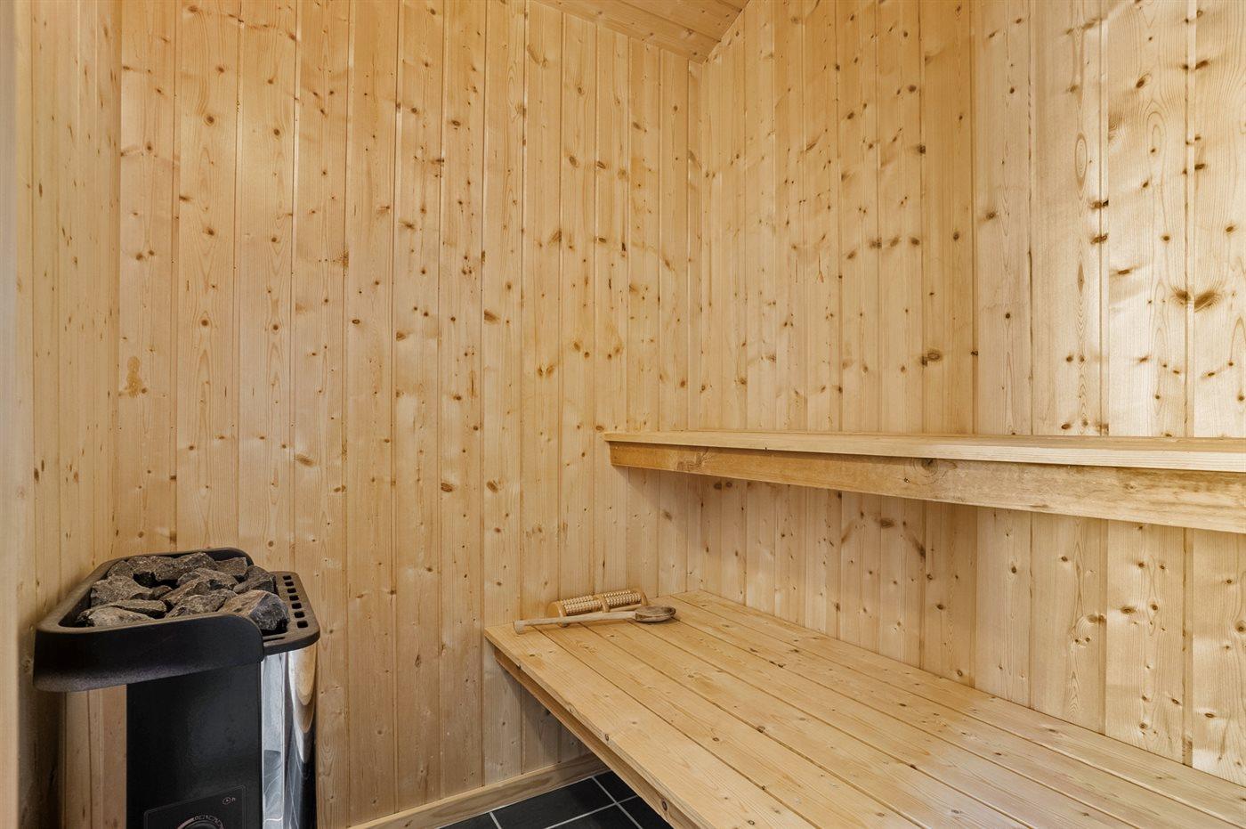 Der er 2 badeværelser med bruseniche og 2 toiletter. Der er gulvvarme på 2 badeværelser. I saunaen er der mulighed for afslapning.