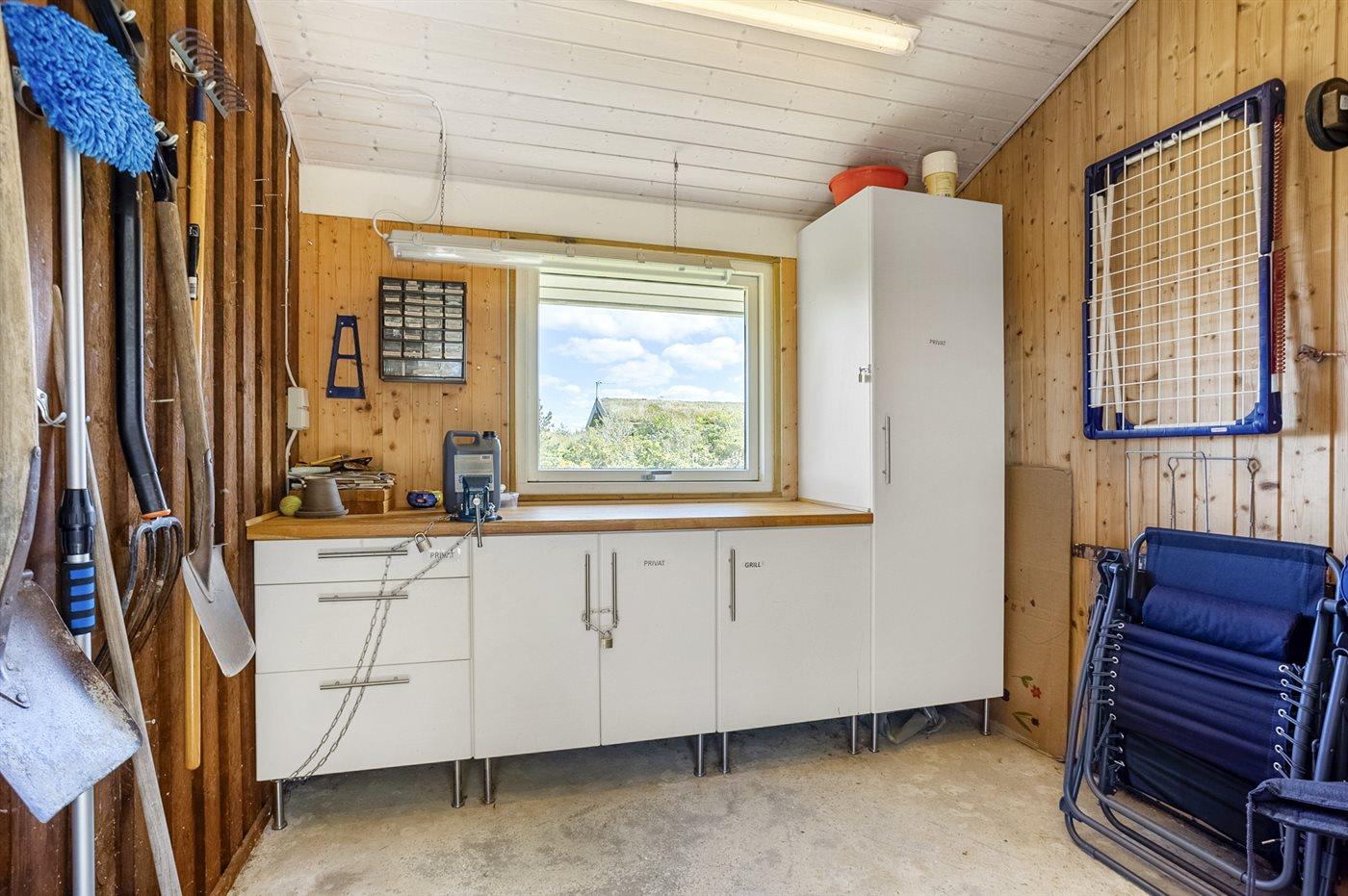 Ferieboligen er beliggende på en 1250 m² stor naturgrund. Der er 1500 m til havet. Nærmeste forretning er beliggende i en afstand af 6 m. Der er en golfbane i en afstand af 10000 m. Til ferieboligen hører 50 m² terrasseareal. Til ferieboligen hører et stort overdækket og lukket terrasseareal. Sandkasse. Rutchebane. Grill til rådighed. Parkering ved ferieboligen.