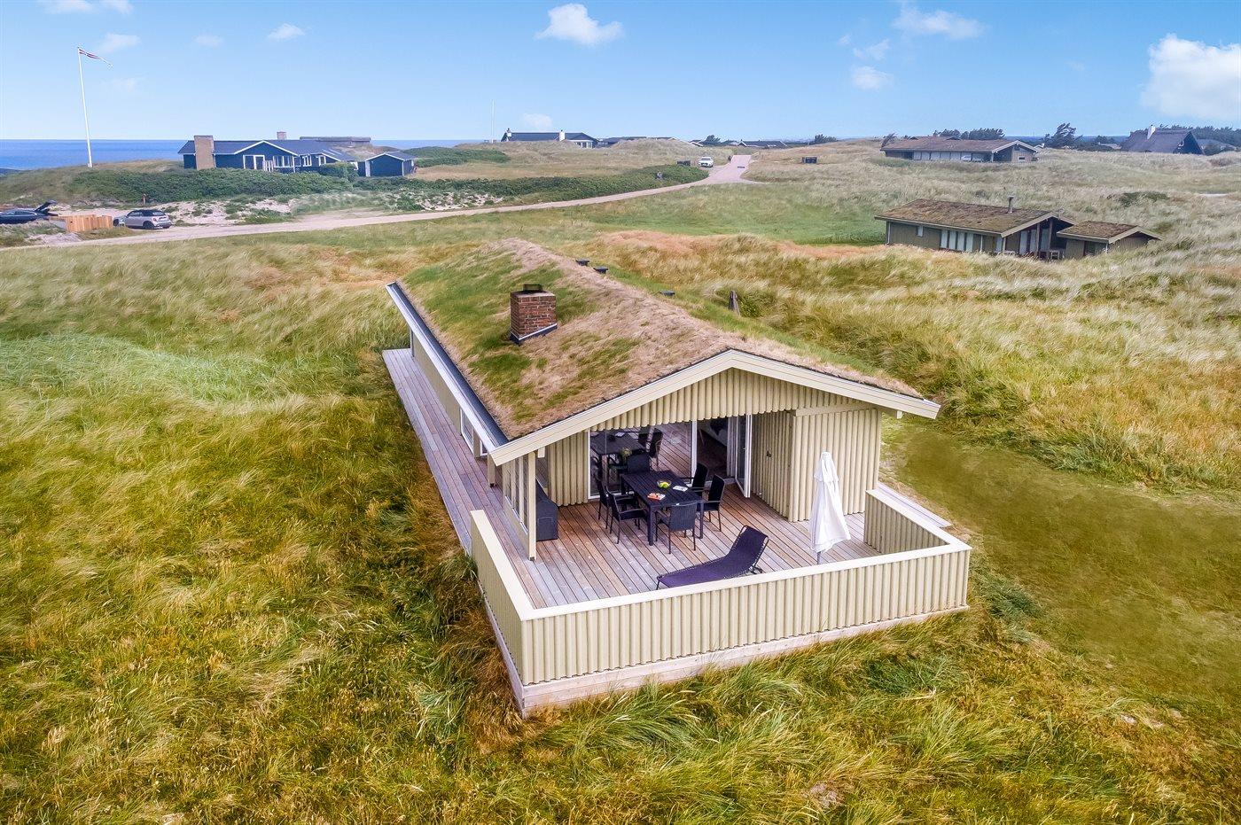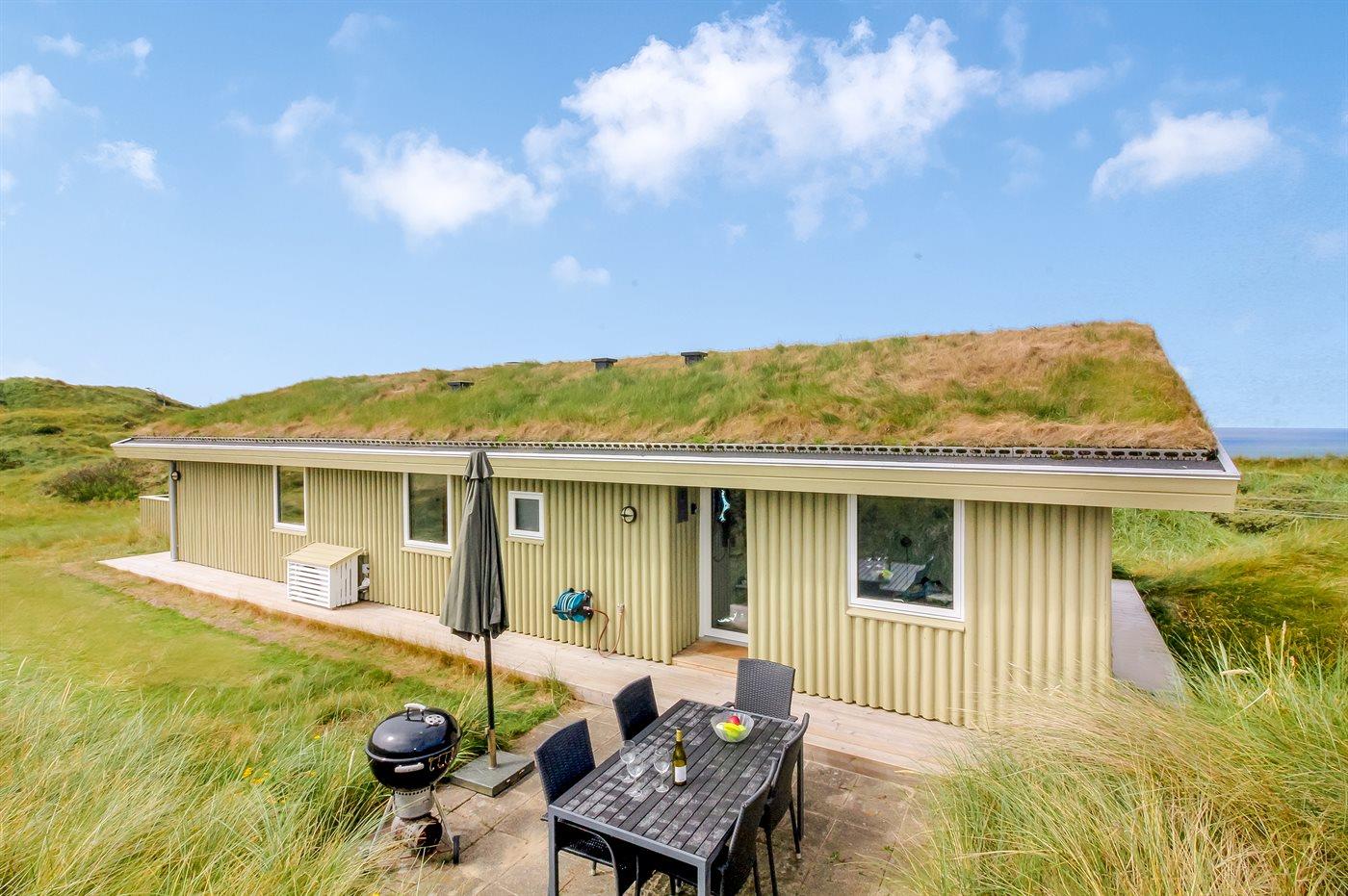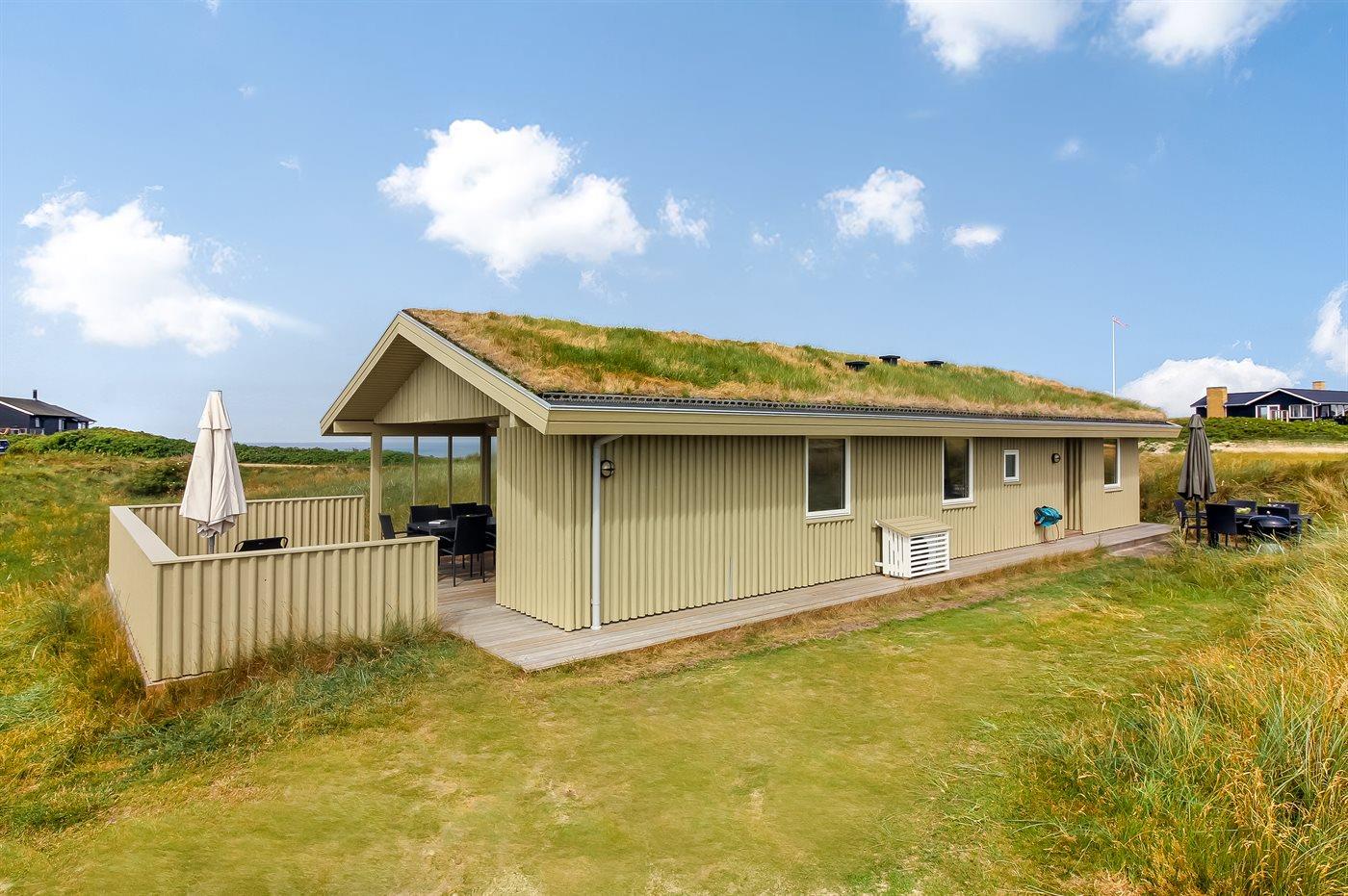 Et skønt sommerhus beliggende på Sinnesvej i det smukke ferieområde Grønhøj. Her er man tæt på Vesterhavet og kan nyde udsigten både fra hus og grund. Nyd en god lang gåtur langs vandet og kom hjem og nyd en varm kop kakao ved brændeovnen eller kryb i ly på den overdækkede terrasse, hvor man kan spille et spil eller læse en god bog.