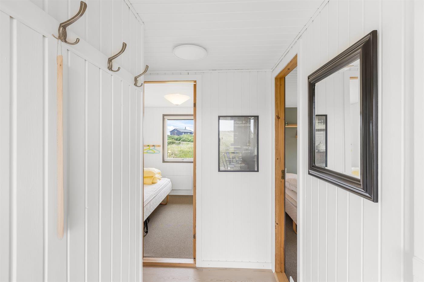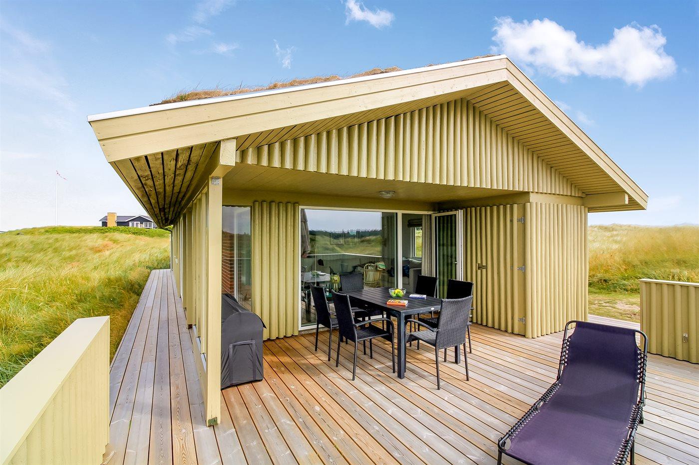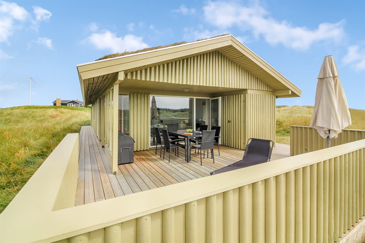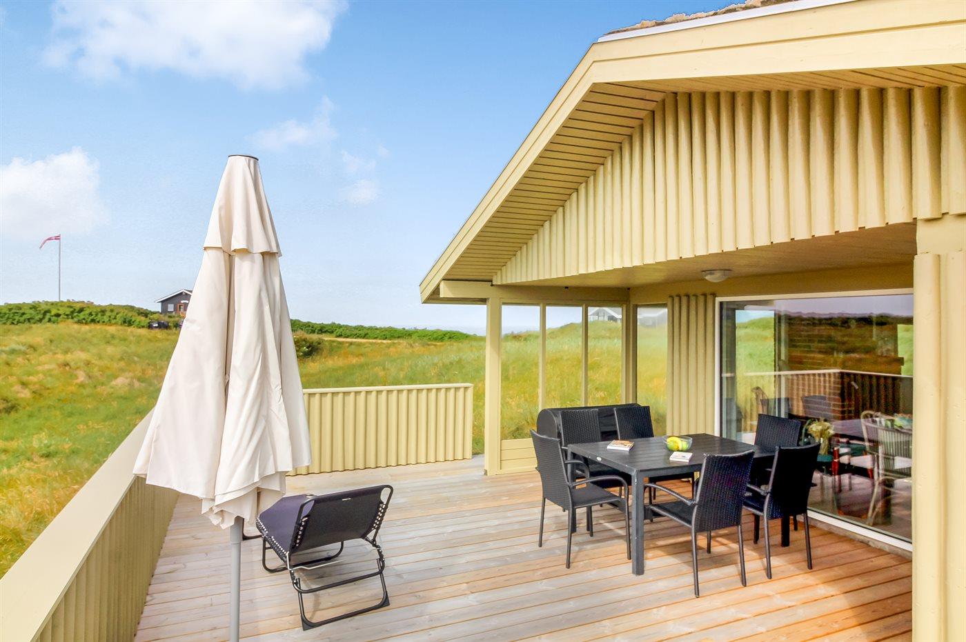 Et skønt sommerhus beliggende på Sinnesvej i det smukke ferieområde Grønhøj. Her er man tæt på Vesterhavet og kan nyde udsigten både fra hus og grund. Nyd en god lang gåtur langs vandet og kom hjem og nyd en varm kop kakao ved brændeovnen eller kryb i ly på den overdækkede terrasse, hvor man kan spille et spil eller læse en god bog.