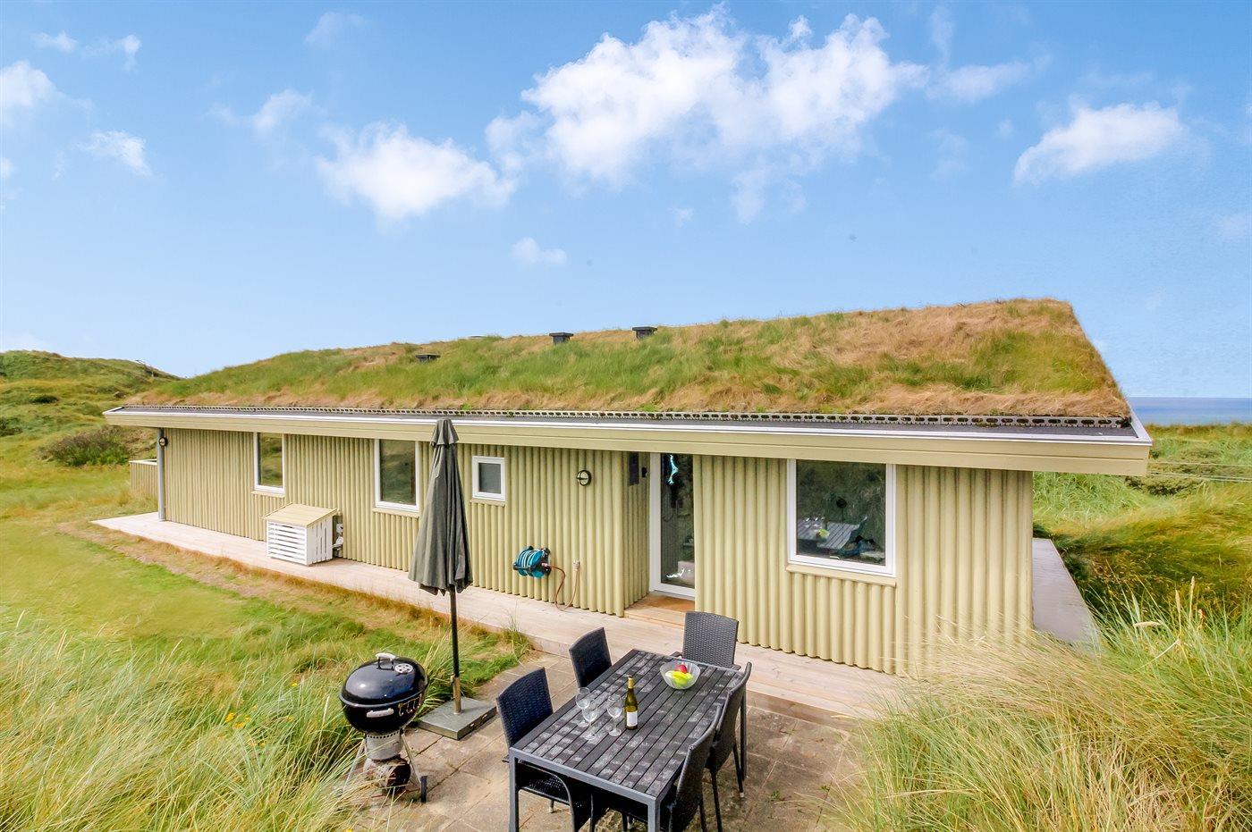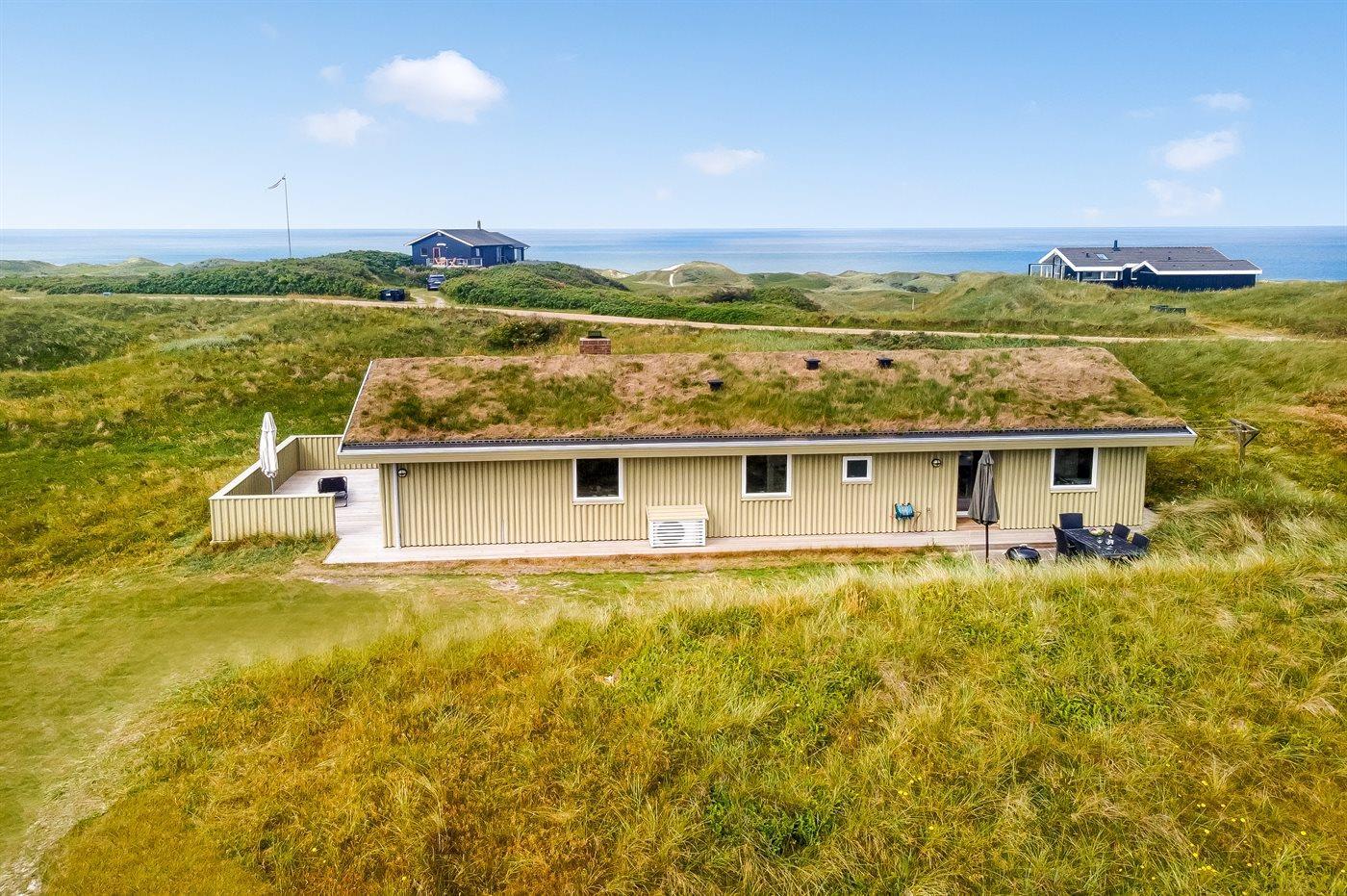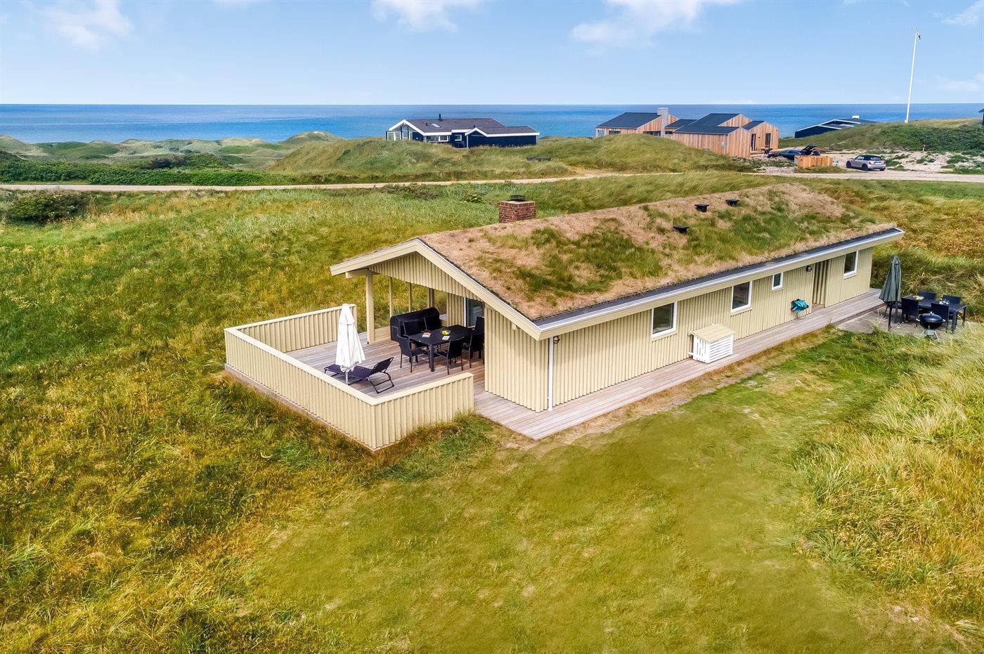 Sommerhus med havudsigt i Grønhøj, tæt på Vesterhavet med moderne faciliteter og stor naturgrund.