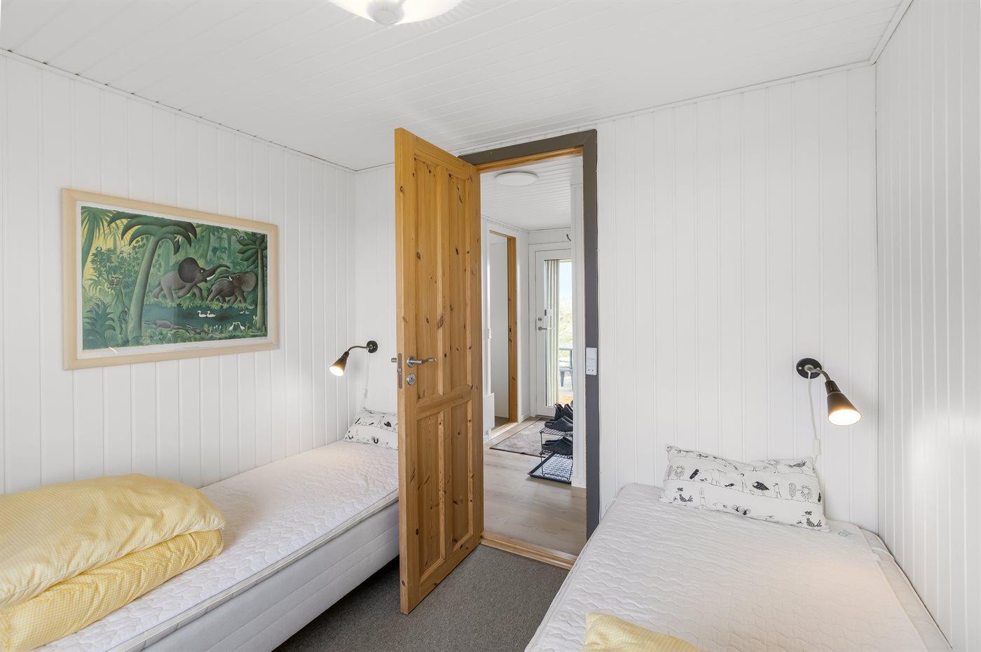 Der er i alt 3 soveværelser. Sovepladserne fordeler sig på: 4 sovepladser i dobbeltsenge. 2 sovepladser i enkeltsenge. Derudover er der 1 stk. barneseng.