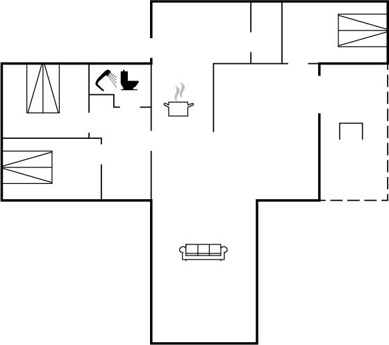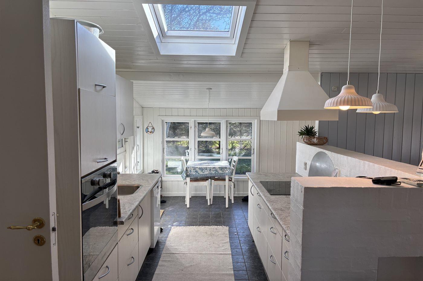 Køkkenet er udstyret med 1 køleskab. Der er 4 induktionskogeplader, varmluftovn, mikrobølgeovn samt opvaskemaskine.