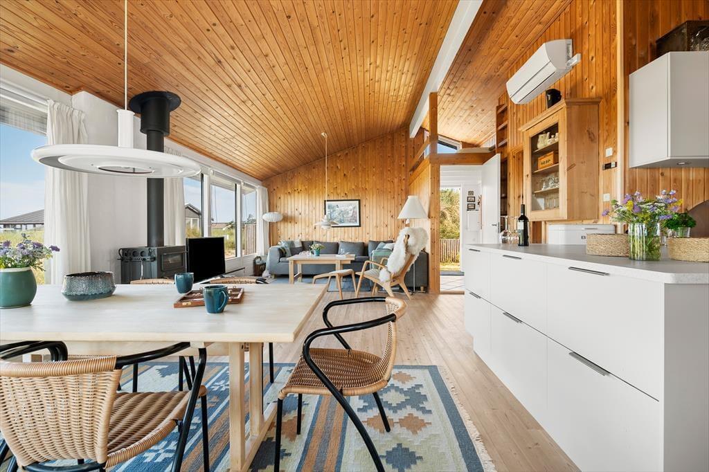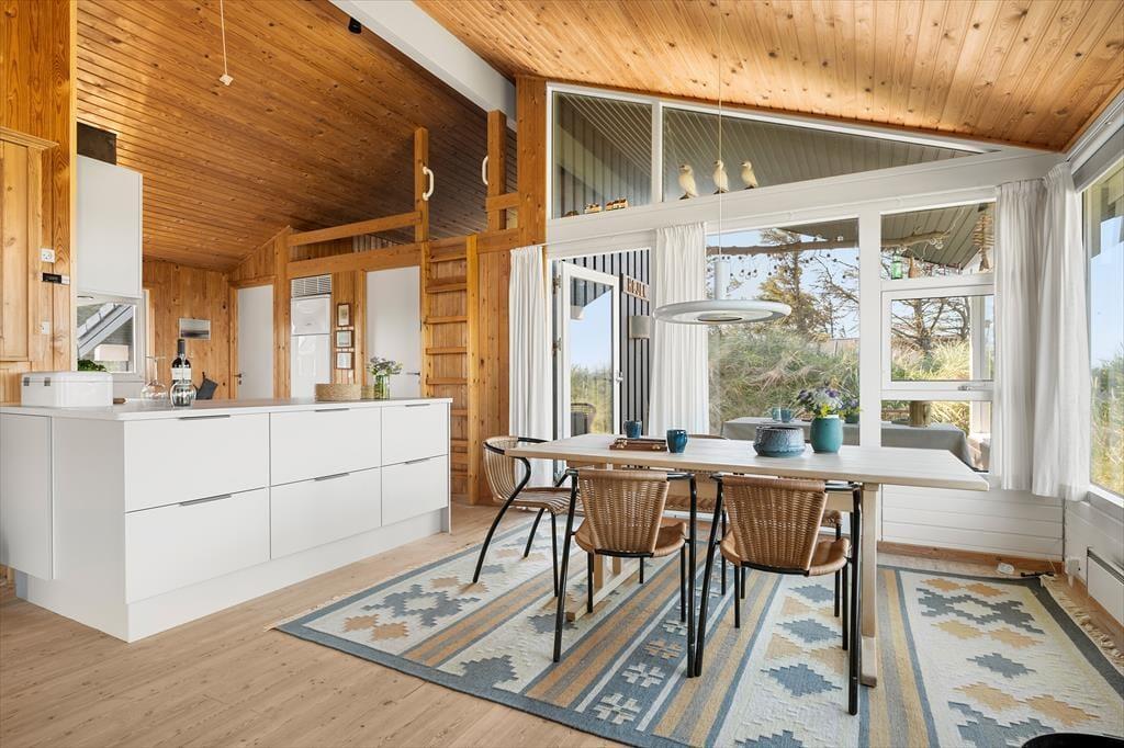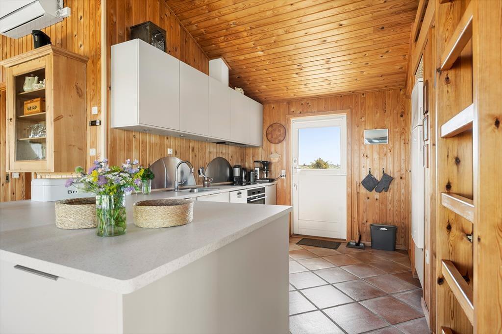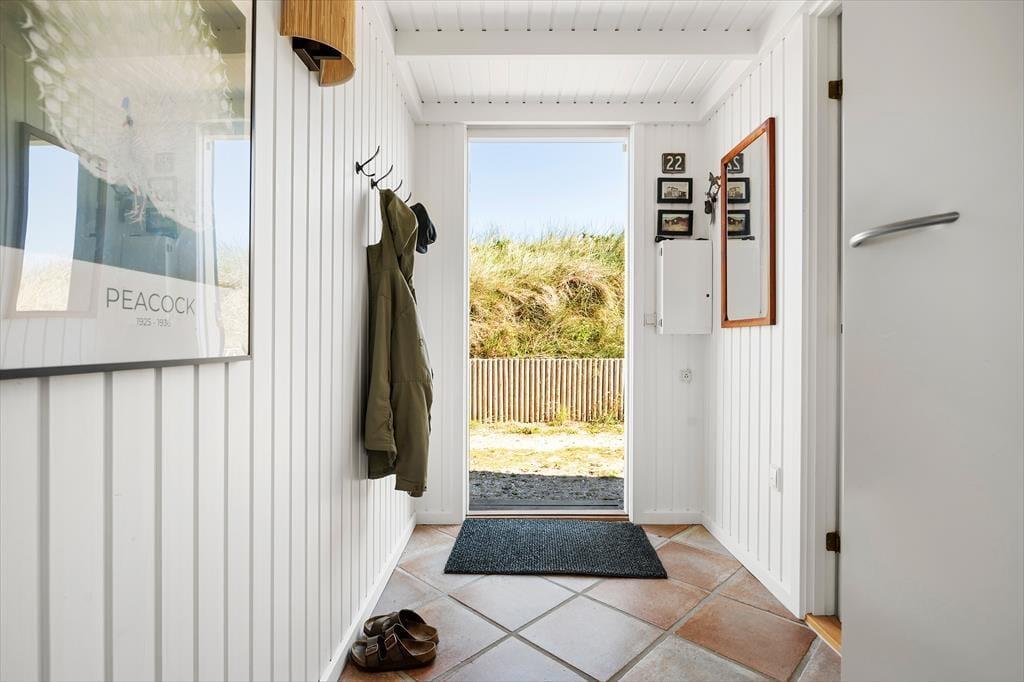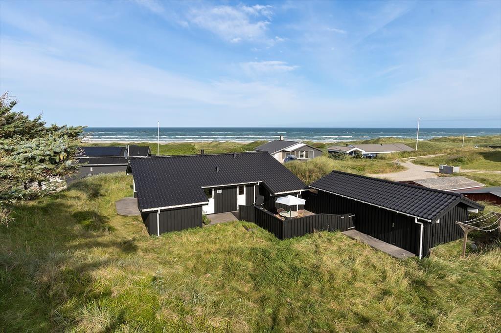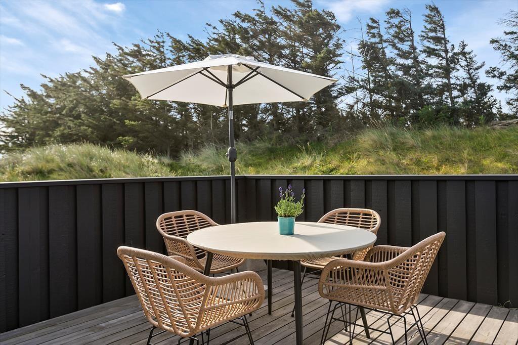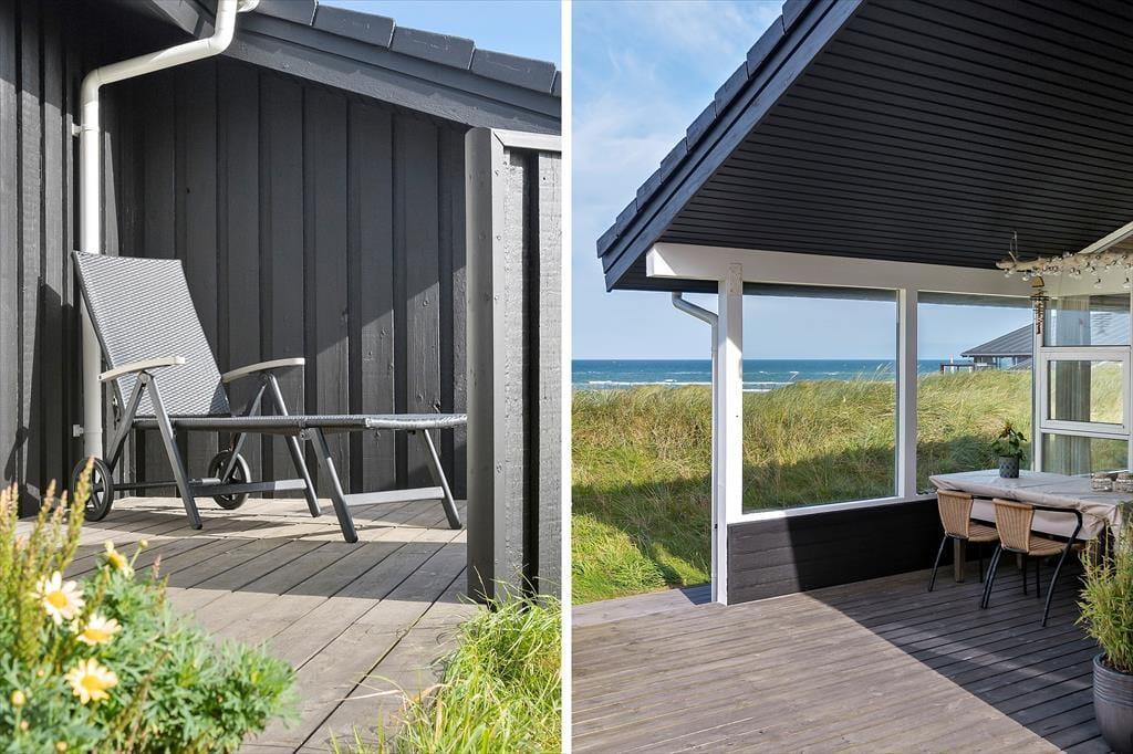 Sommerhusets overdækkede terrasse er det oplagte sted at starte dagen med morgenkaffen, mens du nyder udsigten til de bølgende klitter. Her er der plads til at finde ro i solen, læse en god bog eller samle familien til grillhygge, når dagen går på hæld. Grunden inviterer til afslappede stunder i naturens egne omgivelser, og med Vesterhavet blot en kort gåtur væk er det let at kombinere afslapning med en dukkert i bølgerne eller en frisk gåtur langs stranden.