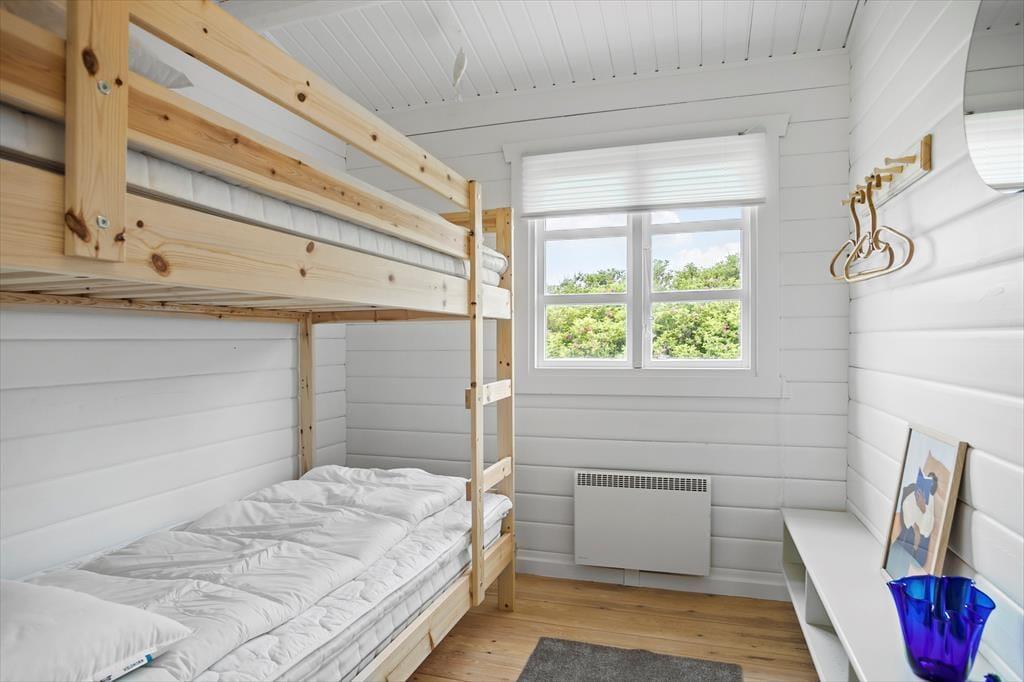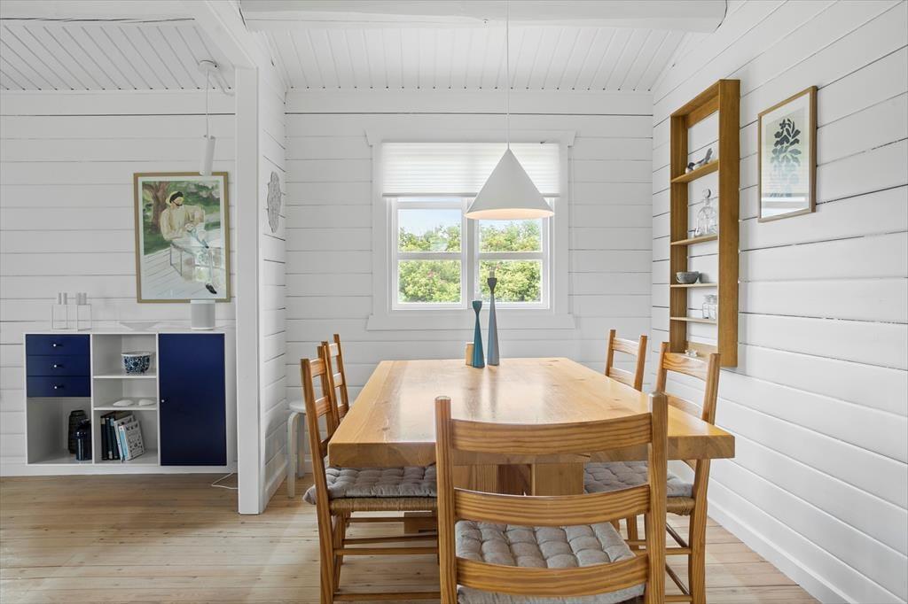 Sommerhuset på Laurasvej 10 byder på en lys og indbydende atmosfære, hvor den rummelige indretning og de store vinduer giver et skønt lysindfald. Her kan hele familien samles i den åbne stue, hvor brændeovnen knitrer og skaber en hyggelig stemning. Det veludstyrede køkken er integreret med stuen, så du kan nyde samværet, mens du tilbereder måltider med friske, lokale råvarer. Huset indeholder tre gode soveværelser og et badeværelse, hvilket giver god plads til både børn og voksne. Efter en dag fuld af oplevelser er det skønt at samles i sofaen foran brændeovnen, hvor roen kan sænke sig, mens mørket falder på udenfor.