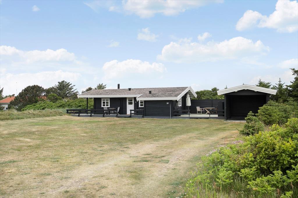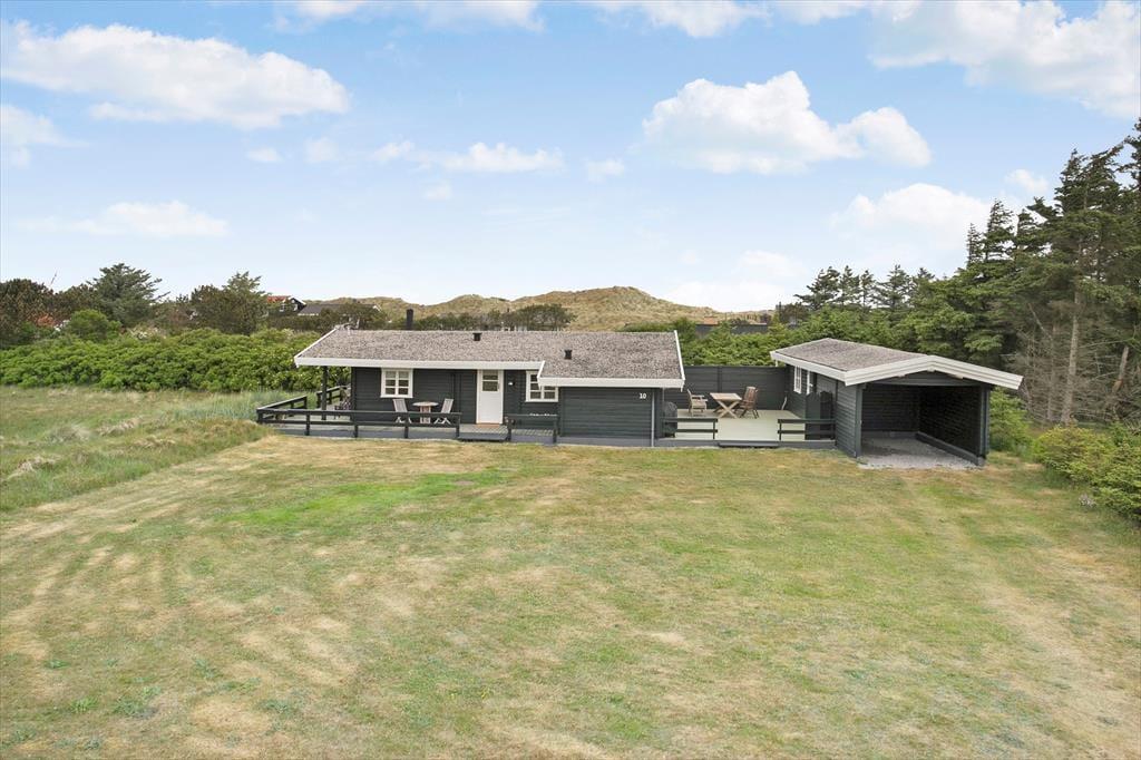 De skønne terrasser omkring huset er det perfekte sted at nyde sommerlivet. Her kan du starte dagen med morgenkaffe i den friske luft, grille lækre middage og lade børnene lege frit på den store græsplæne. Den naturskønne grund indbyder til afslapning og udendørs aktiviteter, og du kan altid finde en solrig eller skyggefuld plet på terrassen. Om aftenen er det et must at tage plads i liggestolen og nyde den smukke solnedgang over Vesterhavet, som kun ligger en kort gåtur væk. Der er også rig mulighed for at udfordre familien i et spil kroket eller blot slappe af med en god bog.