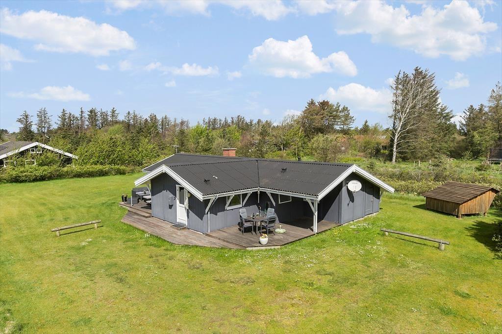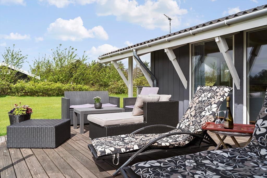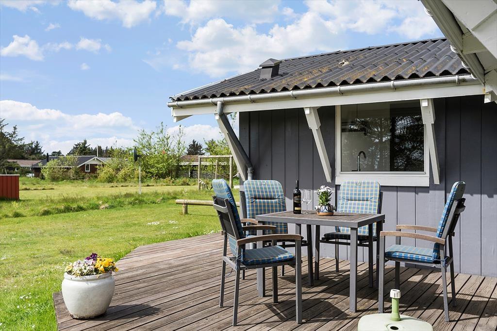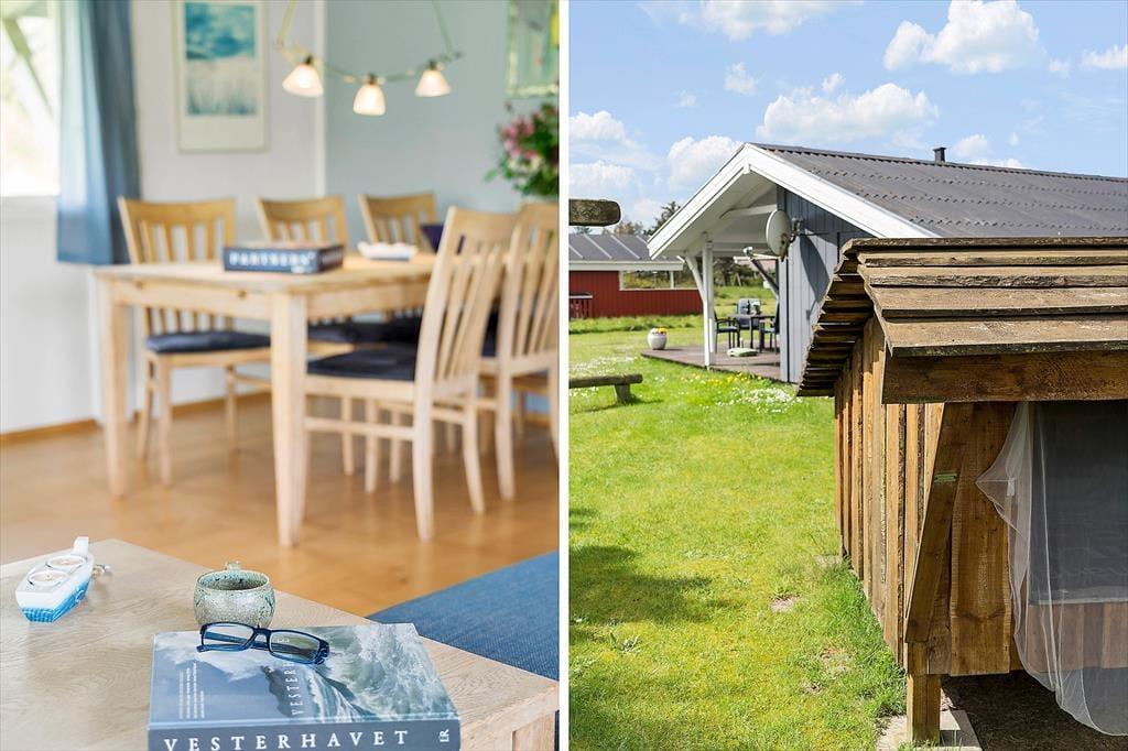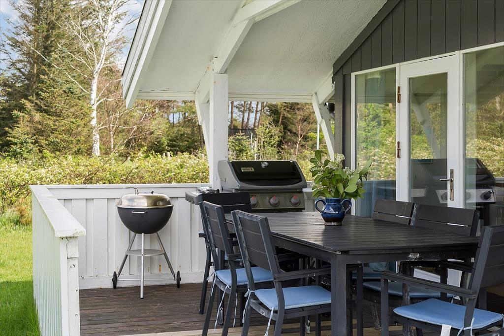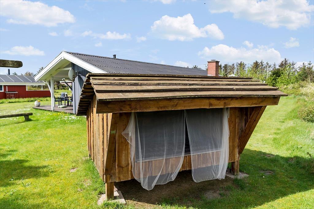 Når vejret er godt, inviterer de dejlige terrasseområder udenfor til afslapning og samvær. Den store grund omkring huset giver masser af plads til leg og aktiviteter for både børn og voksne, og du kan nemt finde en solrig eller skyggefuld plet til at læse en god bog eller nyde en kop kaffe. Det fredelige sommerhus ligger for enden af en blind stikvej, så du er garanteret en ferie i rolige omgivelser, hvor kun fuglenes kvidren bryder stilheden. For de eventyrlystne er der også et shelter på grunden, hvor du kan overnatte under åben himmel og opleve naturen helt tæt på.