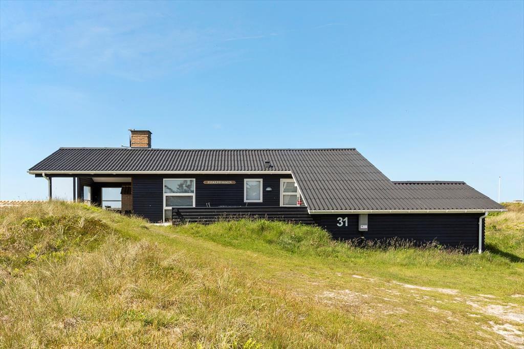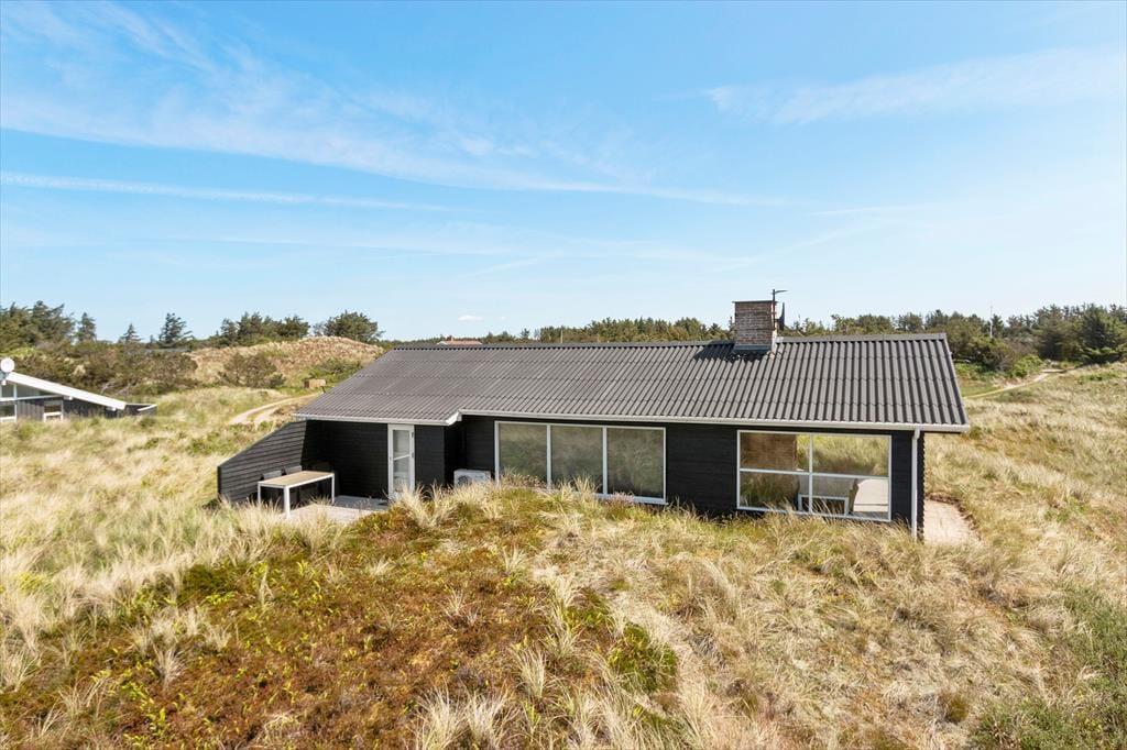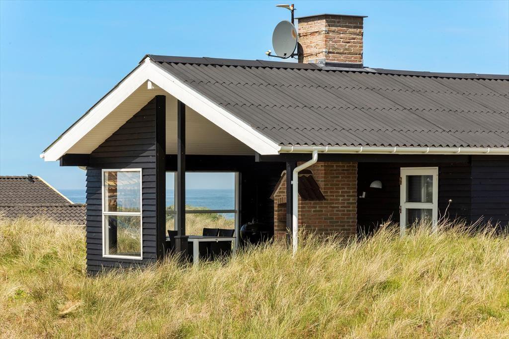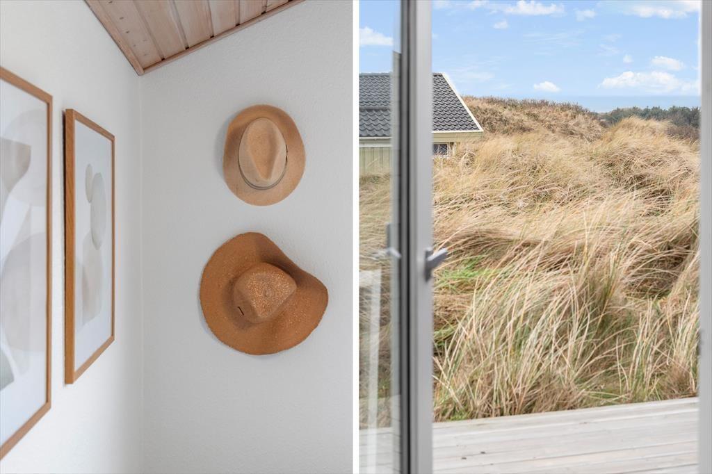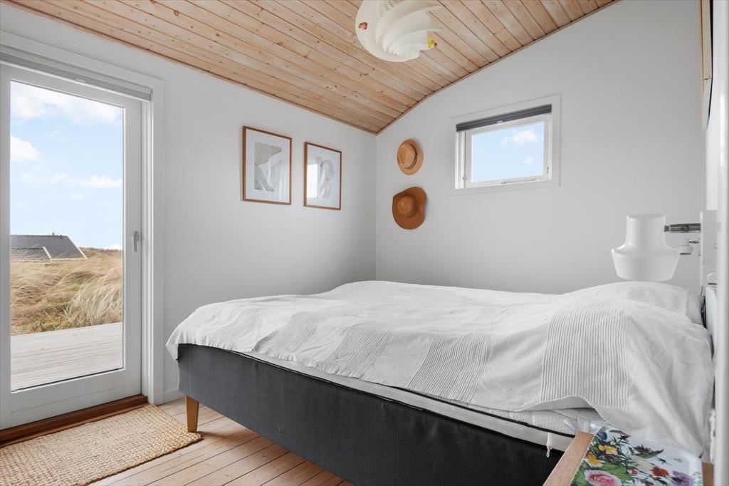 Sommerhuset råder over 72m2 og oser af hygge og charme. Huset er et godt valg for den selektive feriehusgæst og egner sig særdeles godt til et eller to par, som ønsker at komme væk fra hverdagen og sætte afslapning, ro og hygge i højsædet. Det ligger højt og har, fra de store vinduespartier, en dejlig udsigt til klitterne og Vesterhavet fra både køkken og opholdsrum - her kan man virkelig få mange gode stunder med dagens avis eller en god bog. Sommerhuset er velholdt, pænt møbleret og indrettet i en lys og venlig stemning. Der er 2 værelser med dobbeltsenge og 1 værelse med en enkeltseng.
