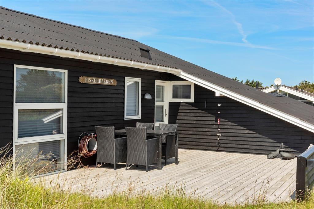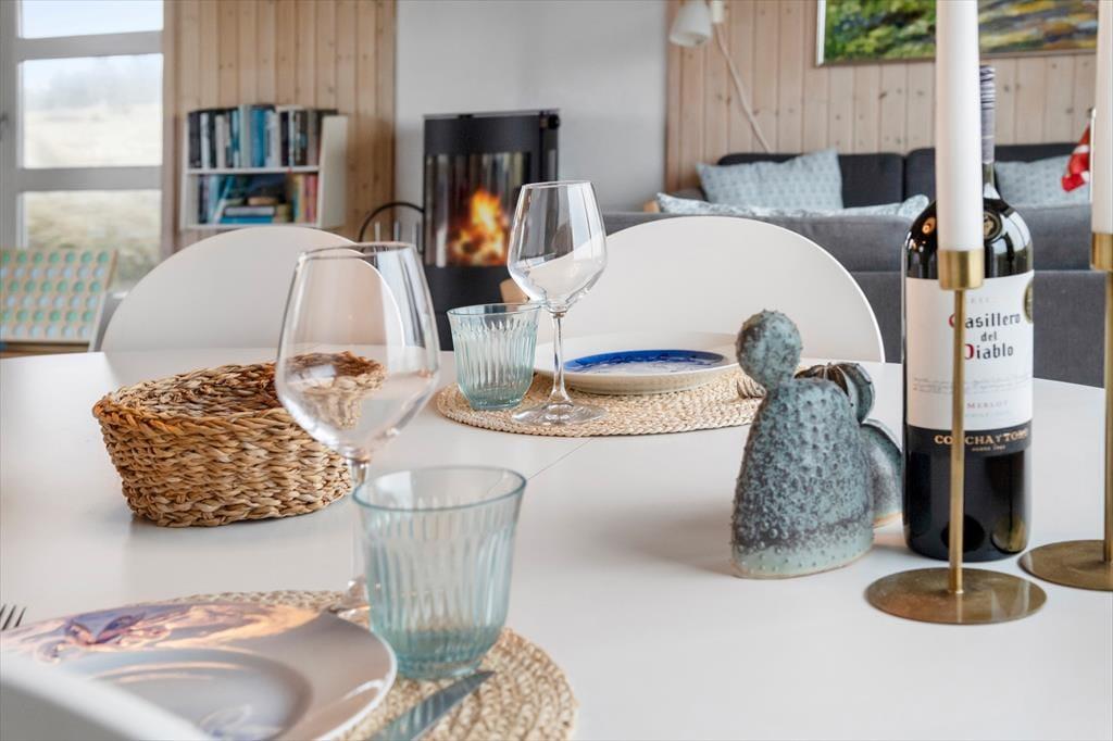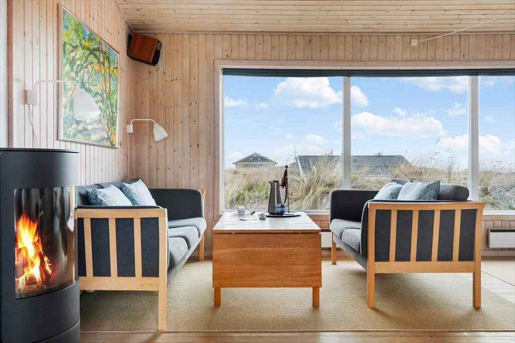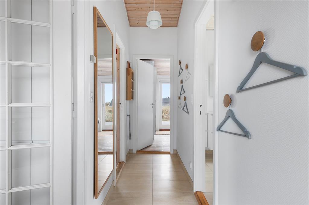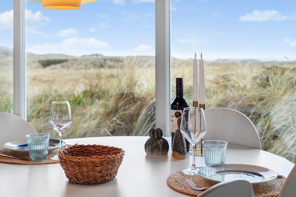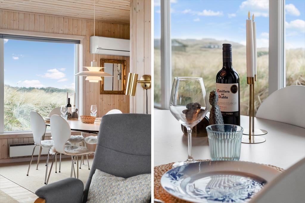 Sommerhuset råder over 72m2 og oser af hygge og charme. Huset er et godt valg for den selektive feriehusgæst og egner sig særdeles godt til et eller to par, som ønsker at komme væk fra hverdagen og sætte afslapning, ro og hygge i højsædet. Det ligger højt og har, fra de store vinduespartier, en dejlig udsigt til klitterne og Vesterhavet fra både køkken og opholdsrum - her kan man virkelig få mange gode stunder med dagens avis eller en god bog. Sommerhuset er velholdt, pænt møbleret og indrettet i en lys og venlig stemning. Der er 2 værelser med dobbeltsenge og 1 værelse med en enkeltseng.