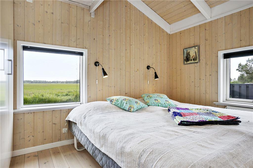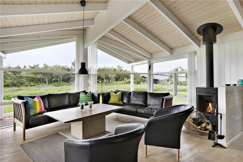 Huset er smagfuldt og gennemført indrettet, og med sine store vinduespartier, kan man sidde og nyde den storslåede natur direkte fra stuen alt imens ilden knitrer i brændeovnen. Spiseafdelingen ligger i forbindelse med det veludstyrede køkken, og herfra er der en dejlig atmosfære året rundt. Sommerhuset er velegnet til både familier og par, da de fire soveværelser – alle med dobbeltsenge - er fordelt i hver sin ende af huset, og med to badeværelser behøver man ikke vente på hinanden om morgenen. En drømmebolig hele året rundt!