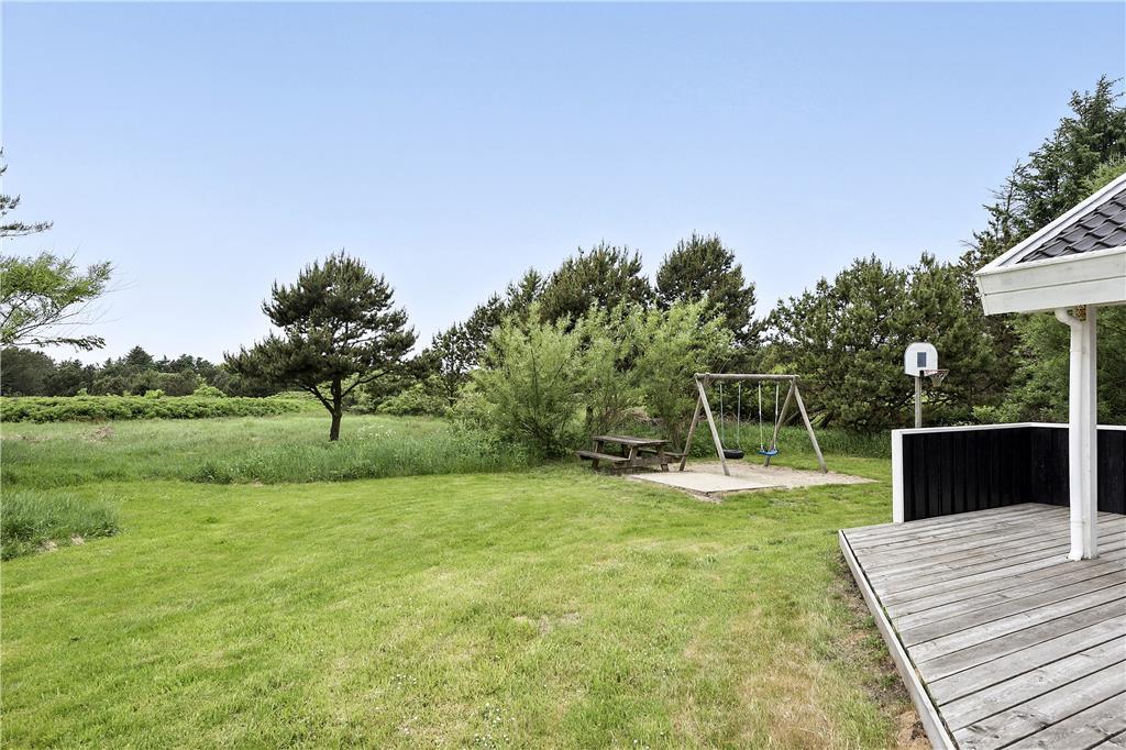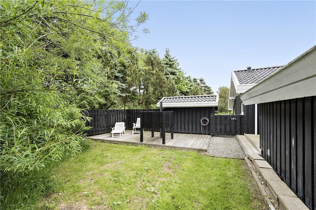 Sommerhuset er omkranset af et flot terrasseareal. I læ af det lille skur er der om sommeren en flot udendørs bruser, så man kan skylle sand og salt af sig efter en tur i havet. På naturgrunden er der gynge, sandkasse, petanque-bane og basketball, så alle i familien kan få nogle sjove timer. Grunden er delvist afskærmet med beplantning og har et flot fredet naturareal beliggende bag ved huset.