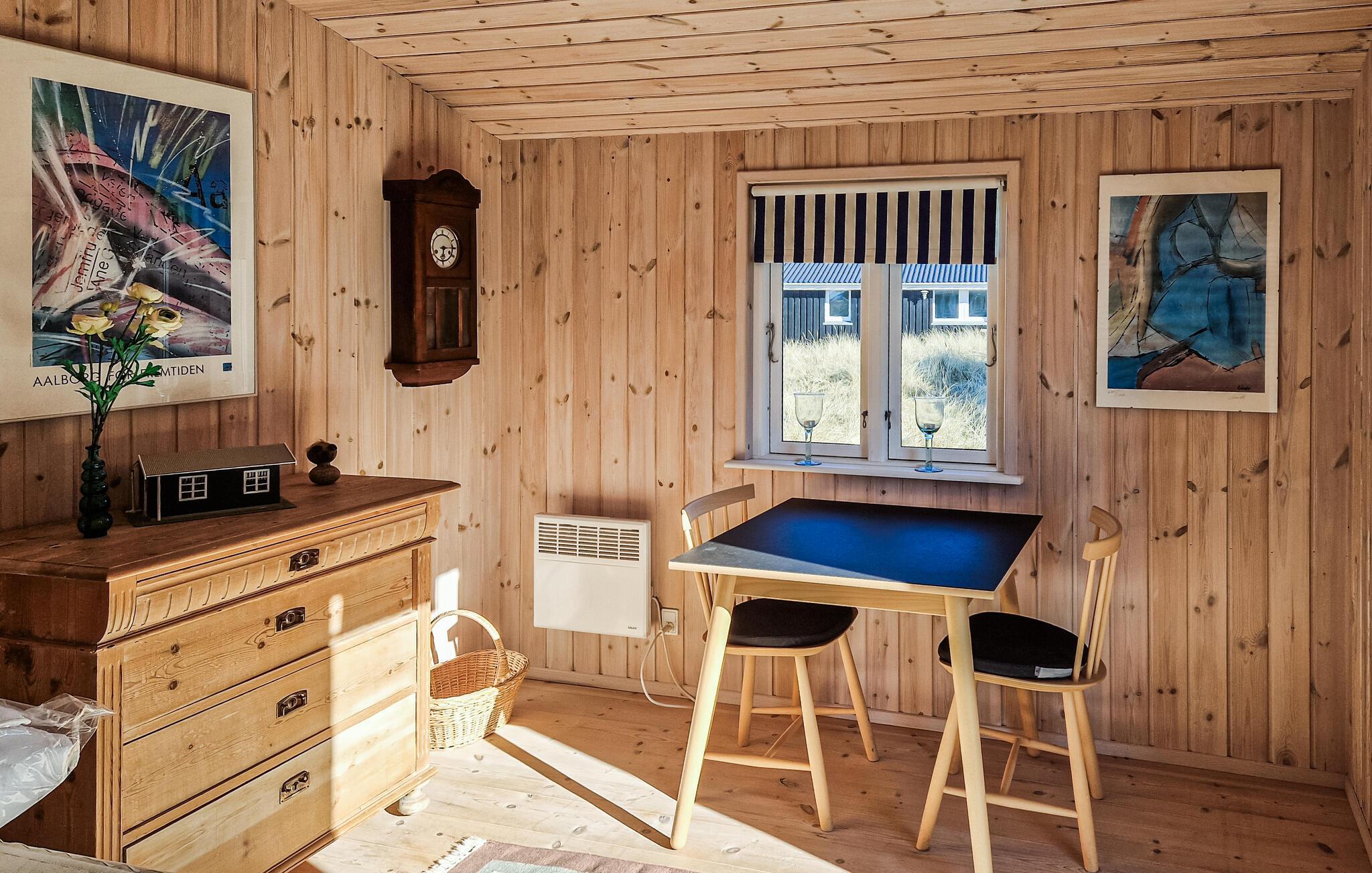 Jeres feriehus, skønt beliggende mellem de populære feriebyer Løkken og Blokhus, inviterer jer til at nyde den maleriske vestkystnatur i afslappede omgivelser. Indenfor møder I en venlig og lys atmosfære. De lyse træpaneler skaber den typiske feriehusstemning, mens de komfortable møbler i opholdsområdet udstråler hygge. Hyg jer i sofaen eller i de bløde lænestole, og nyd fælles stunder med film eller sjove brætspil.