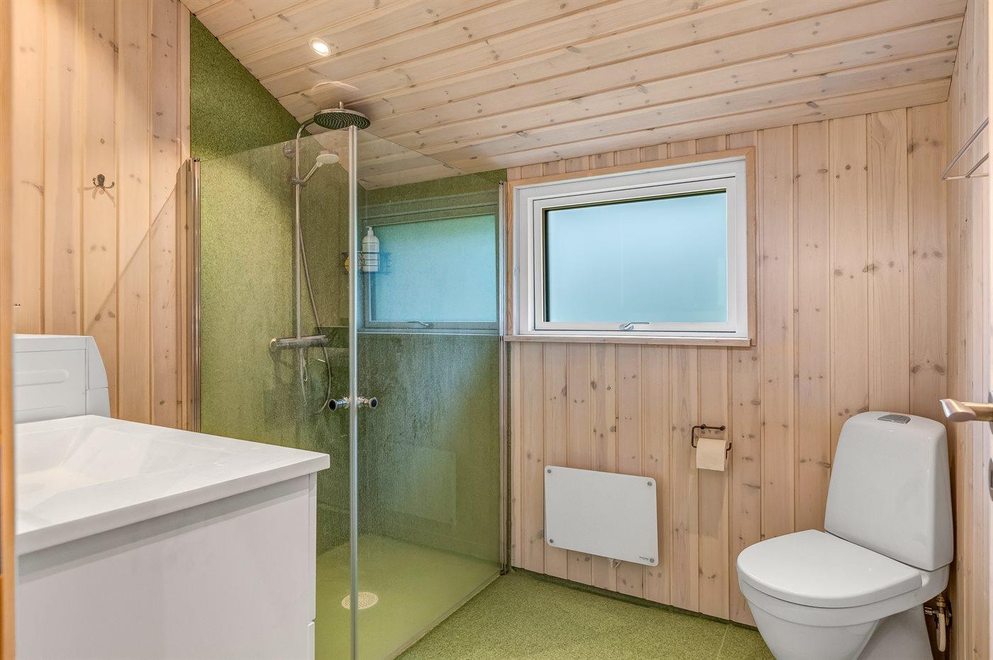 Der er 1 badeværelse med bruseniche og 1 toilet.