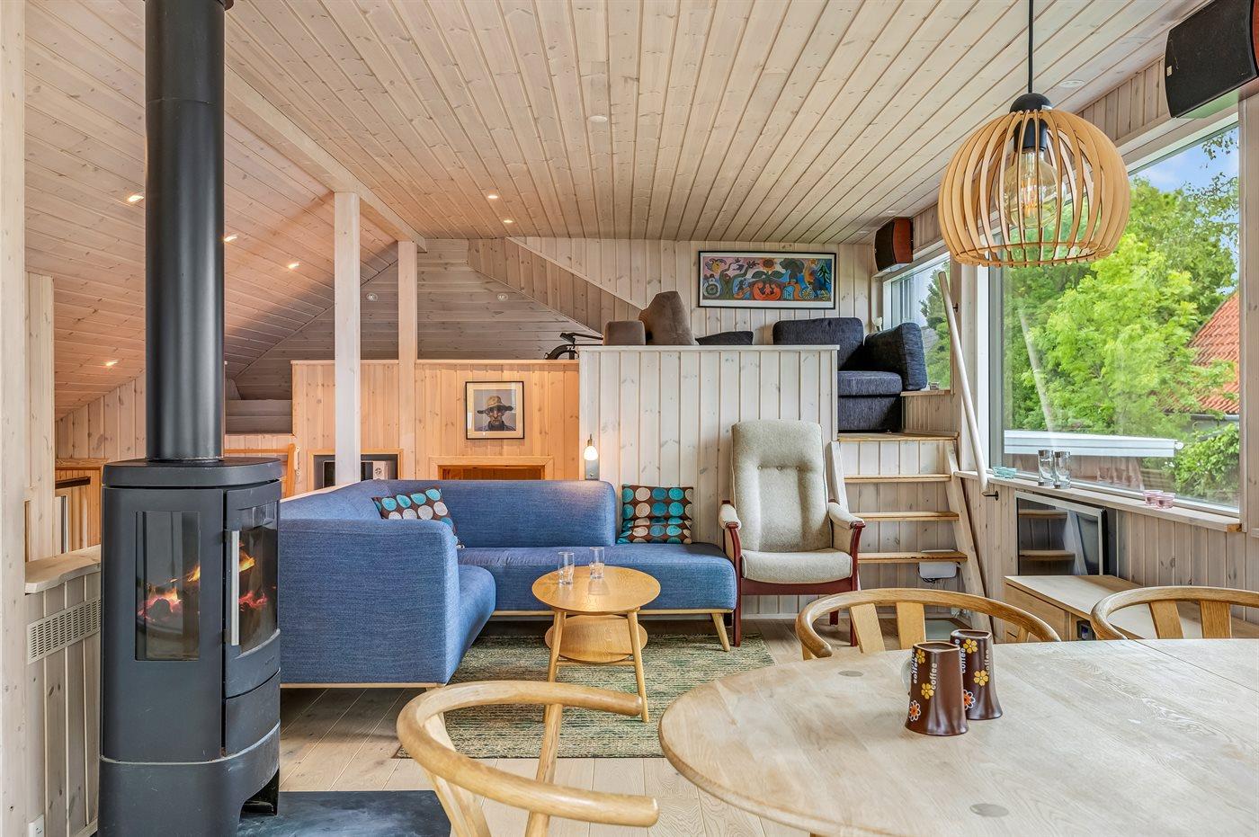 Med dette arkitekttegnede sommerhus fra 2022 får I en feriebolig med masser af sjæl og en helt særlig charme. Huset emmer af hygge og kvalitet, og den gennemtænkte indretning samt materialevalg fra øverste hylde gør, at man straks føler sig hjemme. En mindre trappe fører op til sommerhuset, hvilket giver jer en fantastisk udsigt – både fra huset og fra den fuldstændig lukkede, højtliggende terrasse, hvor feriestemningen for alvor kan nydes.