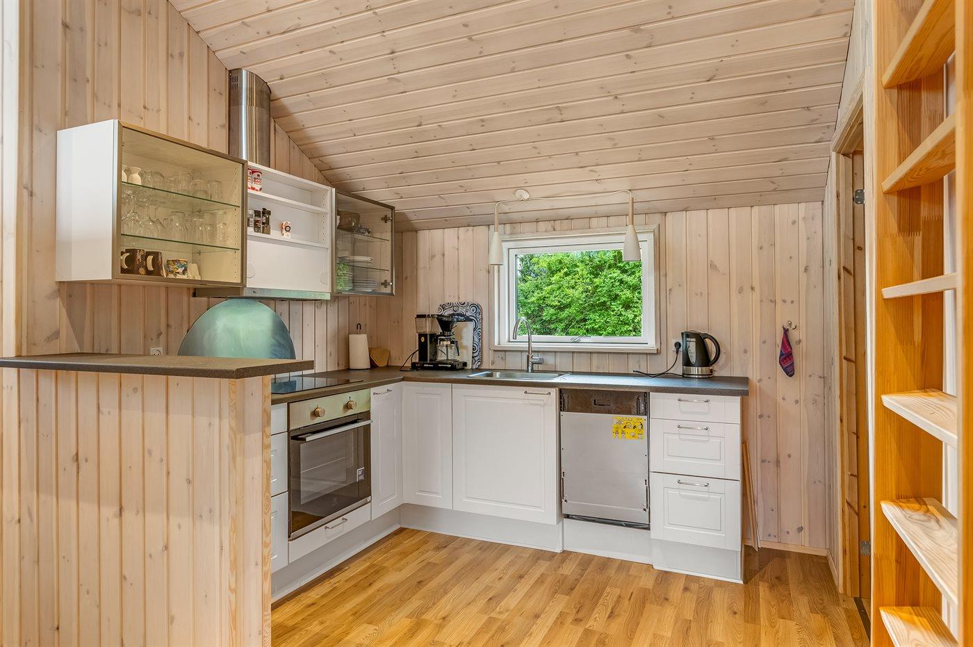 Køkkenet er udstyret med 1 køleskab. Der er 4 induktionskogeplader, varmluftovn, mikrobølgeovn samt opvaskemaskine.