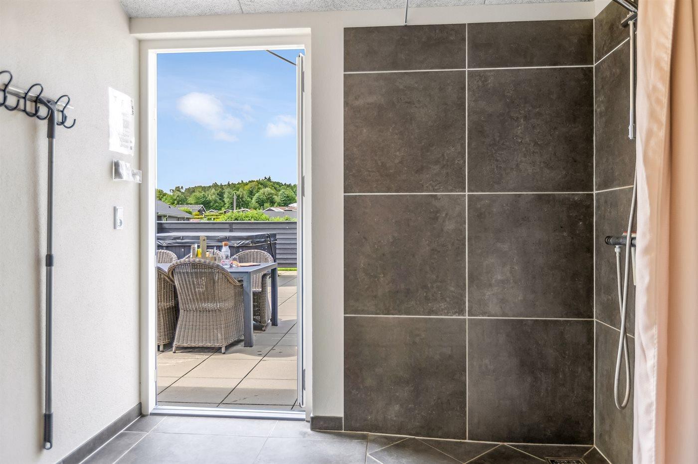 Der er 2 badeværelser med bruseniche og 2 toiletter. Der er gulvvarme på 2 badeværelser. I saunaen er der mulighed for afslapning.
