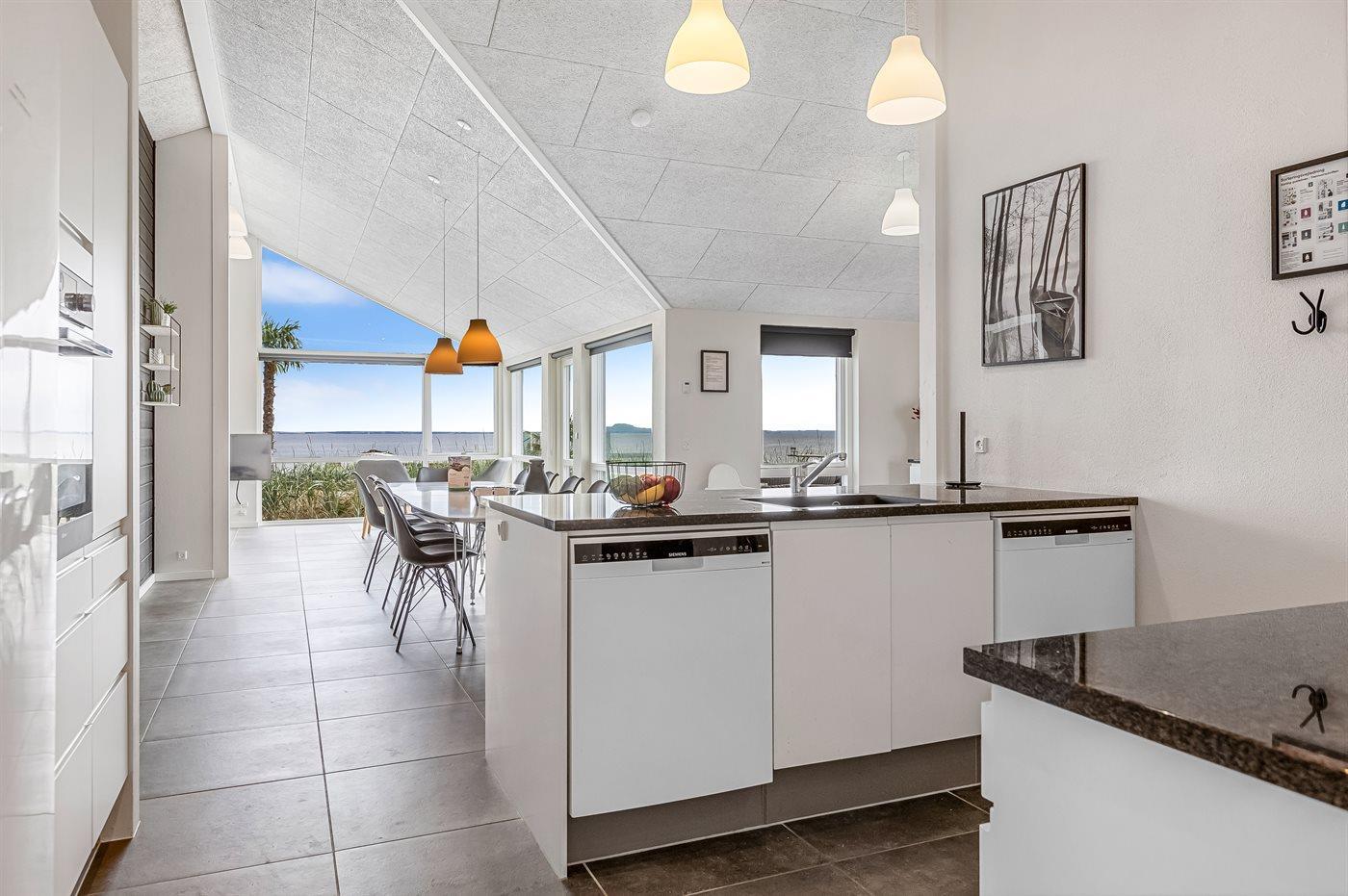 Køkkenet er udstyret med 1 køleskab. Der er 4 induktionskogeplader, varmluftovn, mikrobølgeovn samt 2 opvaskemaskiner.
