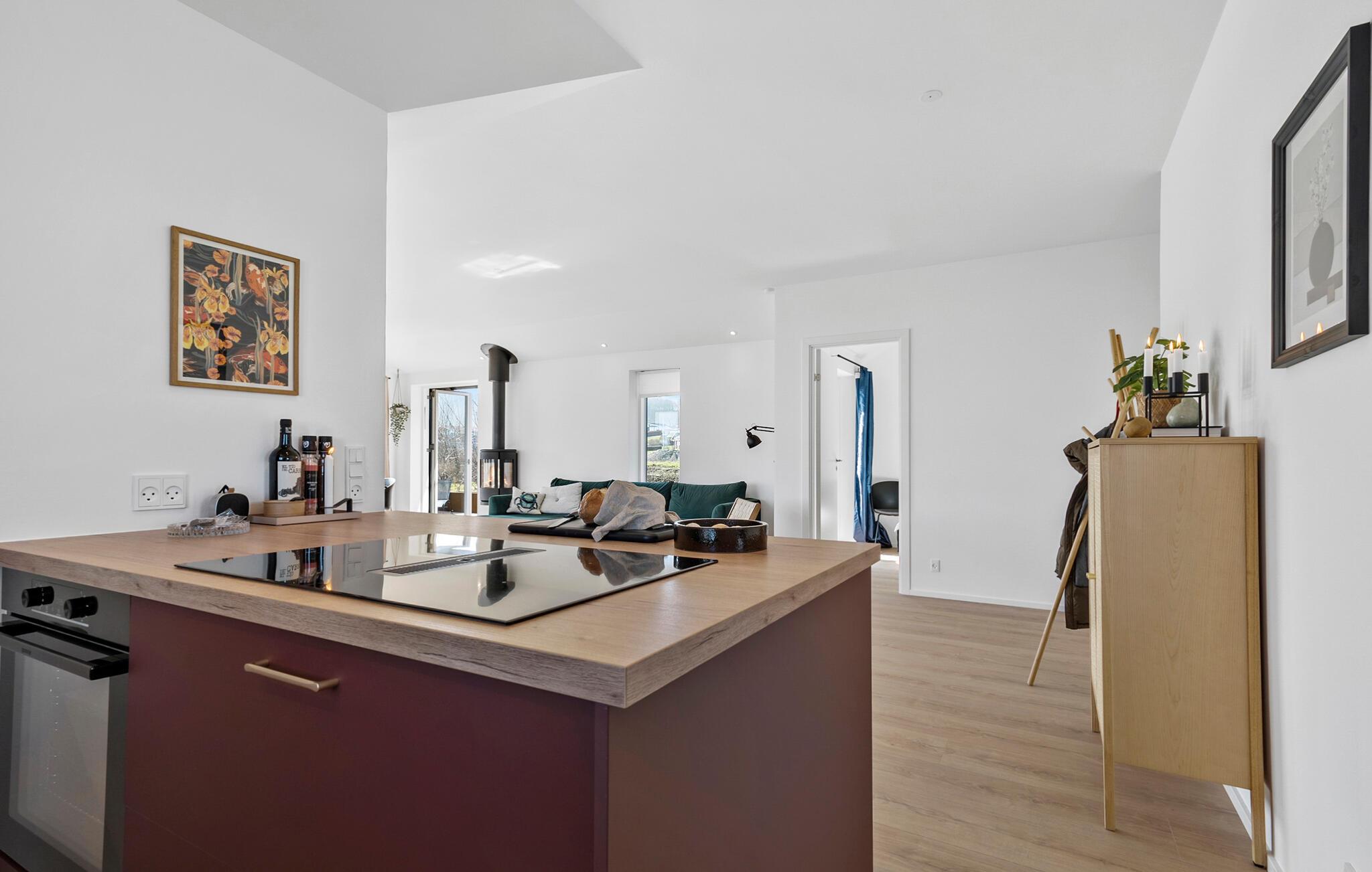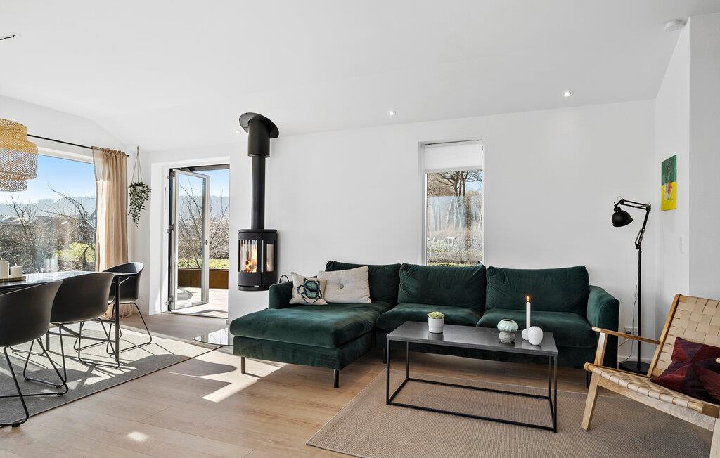 Med sin beliggenhed, udsigt og indretning får I her en helt fantastisk base for et vidunderligt ophold med familien. Indvendigt emmer det af kvalitet og komfort over hele linjen, og udsigten til Lillebælt kan nydes, hvad end I laver mad i det veludstyrede køkken eller slapper af med en god bog i sofaen. Tænd op i brændeovnen på de lidt køligere dage og nyd dens varme og knitrende lydtapet, mens I ser en god film eller spiller brætspil ved spisebordet efter en aktiv feriedag.